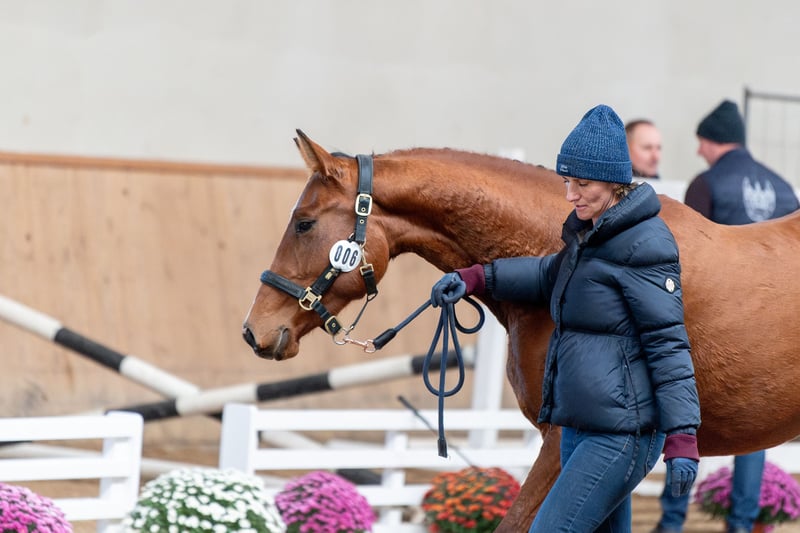 Leelett ist eine charmante und schön gebaute Stute weiblicher Abstammung, geboren im Jahr 2023. Sie besticht vor allem durch ihre außergewöhnliche Kombination der besten Springlinien (Cassini I und Ramiro Z) sowie der besten Vollblutlinien im Springsport (Heraldik xx und Favoritas xx), mit einem Blutanteil von über 68 %. Bei diesem Jahrgangs-Championat im Freispringen in Galiny erreichte sie in der Kategorie der zweijährigen Stuten die höchste Bewertung von 8,6 Punkten für ihre Sprünge in ihrer Altersklasse. Die Richter lobten vor allem ihre hervorragende Springtechnik, die ausgezeichnete Arbeit mit den Vorderbeinen, ihre große Bereitschaft, Hindernisse zu überwinden, sowie ihr typvolles Erscheinungsbild und den hohen Blutanteil. Leelett ist Tochter des anerkannten und im Sport bewährten Hengsts Cassilio (Cassini I x Heraldik xx). Sie ist die letzte Jahrgangsproduktion nach Cassilio, der Ende 2022 verstarb. Ihre Mutter ist die Stute Leeloo Red Wine (Favoritas xx x Ramiro Z), gezüchtet bei der renommierten Springpferdezuchtstätte Red Wine – den Besitzern Sergiejow. **Cassilio – Karriere:** Cassilio begann seine Karriere in Fohlenprüfungen. Er gewann zweimal die Goldmedaille bei den Polnischen Meisterschaften der jungen Pferde im Springen. Danach platzierte er sich mehrfach in den Top-Resultaten und nahm insgesamt an fast 100 internationalen Turnieren teil. Er belegte beispielsweise den 2. Platz im 145 cm Springen beim CSI2*-W in Budapest und gewann den European Youngster Cup 145 cm in Bratislava. **Cassilio – Abstammung:** Cassilio war Nachkomme des legendären Hengsts Cassini I, der erfolgreich auf internationalen Turnieren bis 160 cm startete und bedeutende Nachkommen wie Eurocommerce Berlin (ehemals Caspar), Cumano, Cabrio van de Heffinck, Carambole, Candillo und Casiro I hinterließ. Cassini I erwies sich auch als hervorragender Muttervater. Zu seinen Töchtern zählen unter anderem Dominator Z, La Calidad und Vingino. Die Mutter von Cassilio, M-Heraldika xx, ist Tochter des epochalen Vollbluthengsts Heraldik xx, der vor allem im Vielseitigkeitssport (WKKW) bedeutend war. Er ist Vater von bekannten Pferden wie dem Europameister 2013 Halunke FBW sowie dem doppelt olympischen Goldmedaillengewinner und Mannschaftsolympiasieger Butts Abraxxas. Die holsteinische Familie 2666 brachte Turnierstars wie den Wallach Cantaro hervor, der erfolgreich in Springen bis 160 cm startete. Aus derselben Linie stammen auch die anerkannten Hengste Carolus I und Carolus II, letzterer Vater der Mutter des ausgezeichneten Springers Grandorado TN. **Leeloo Red Wine – Abstammung:** Leeloo Red Wine stammt aus der Zucht der renommierten Zuchtstätte Red Wine, Eigentümer der Sergiejow. Sie ist Tochter der bewährten Stute Rovinia-L (Ramiro Z x Calando I), die in derselben Zuchtstätte aufgewachsen ist und zahlreiche Nachkommen im Springsport auf 1,50 m-Niveau hat (z. B. Diamiro in den USA, nach Diarado; Rasta nach Spartacus TN; Quantino Red Wine nach Quickly de Keisler). Leeloo Red Wine hat fünf Fohlen zur Welt gebracht, die alle durch ihre Schönheit, Springfähigkeit und Mut überzeugen. Der älteste ist der Wallach Violina Red Wine (nach Valmy de la Lande), der derzeit in den USA in Springen, Hunter und Vielseitigkeit startet. Leeway Red Wine (nach Highway TN) zeigt außergewöhnliche Springfähigkeiten und startet auf 1,20 m. Die jüngeren Nachkommen, darunter Leelett, wachsen noch auf den Weiden auf. **Quelle:** https://eurobreeding.com/2006-2022-cassilio/
