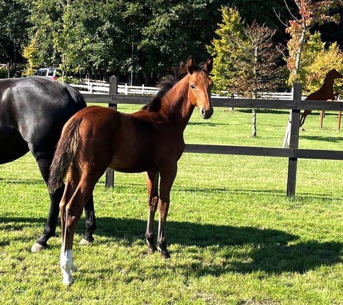 Fay Only FW is a daughter of First Call de Muze Z, out of the majestic For Pleasure, who, under Lars Nieberg and later Marcus Ehning, won a total of 5 gold medals at the world's largest equestrian events: World Championships, European Championships, and the Olympic Games. These results make him the most decorated stallion in the world. First Call de Muze Z is one of the mares through which the blood of the mare of the century, Ratina Z, is maintained at the de Brabander stud. Ratina Z, under Piet Raymakers and later Ludger Beerbaum, won 3 Olympic medals (including 2 golds), 2 golds at the European Championships, the World Cup, and the World Championship. The mother of First Call competed at the level of international Grand Prix and is a daughter of the clone of Ratina Z. This maternal line has produced many outstanding horses, including full brothers Ratiny Rebel Z I-III, as well as Crown Z, Rex Z, Ahorn Z, Heureka, Goliath Z, and from the youngest generation at Joris, the stallion Cuba Libre de Muze, as well as the son of First Call - Istambul MVD. The mother of the filly is the stallion Ultra Flip de Muze, from the phenomenal mare Butterfly Flip, who has competed in the most difficult competitions in the world under the Swedish rider Malin Baryard-Johnsson. Butterfly Flip is the daughter of a thoroughbred mare and the stallion Robin II Z from the jumping branch of the Polish Anglo-Arabian lineage Ramzes xo. Thus, Ultra Flip de Muze was created, a young and very promising stallion by Kasanova de la Pomme, out of the mare Quick Flip de Muze by Mosito van het Hellehof, who is already jumping at the level of 1.45 m. Her mother, Flip de Muze (by Vigo d'Arsouilles), is directly a daughter of Butterfly Flip, who also competed internationally under Bernardo Alves. In competitions for licensed stallions, Ultra Flip impressed with his riding qualities and scope.