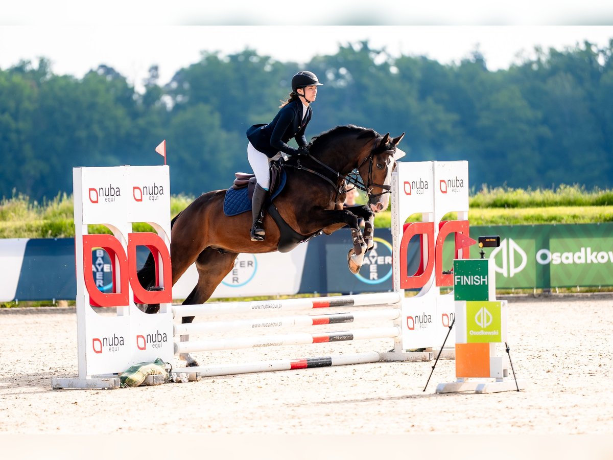 For sale: a beautiful Polish sport horse! Introducing a 2021-born gelding. The horse has an elegant dark bay coat and stands at 16.1 hh. Perfect for show jumping, it is suitable for both experienced riders and those looking to develop their skills in this discipline. Directly from a trusted breeder with a proven bloodline. Please feel free to contact me to arrange a viewing! Price is negotiable due to rider injury. We also have a larger selection of horses at various training levels available.