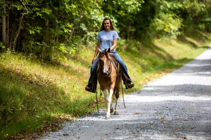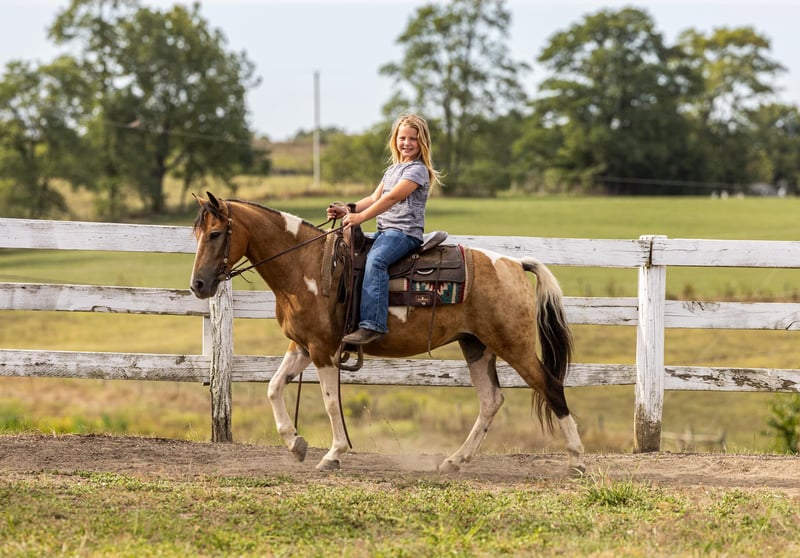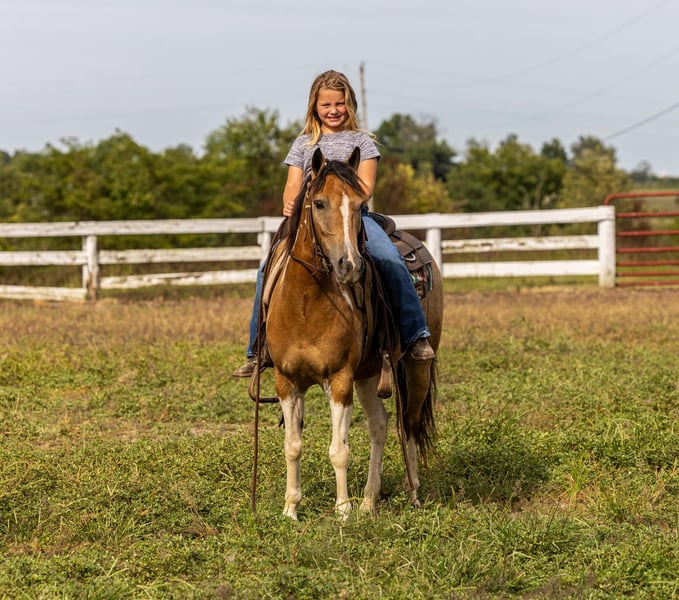 ONLINE AUCTION Place your bids at www.PlatinumEquineAuction.com Starting Bid $3500 Auction ends September 22nd, 2024 Need a new saddle? Check out White Rock Saddles on our website or Facebook! Butterscotch is every bit as sweet as his name! If you’re looking for safe and flashy, he’s got it all! The ultimate package, Butterscotch stands at 12.3 hands tall and rides just like the big horses do. He is broke, broke, broke! He’s the pony that raises children from the time they start riding until they become young adults. At 9 years old, he has proven himself time and time again, and still has everything left to give. He is honorable, honest and consistent. Butterscotch has been ridden by beginner children on the trails and is proud to do so, watching his footwork every step of the way. He crosses any obstacle with confidence, you can rest assured your children have an autopilot ride. He will ride in the back, middle, front or even alone. Turn him loose with your young riders and see their confidence soar! If play days and fun shows are your style, he has the means to excel in just about any class. He has the buttons and handle you are looking for, yet he is 100% forgiving and tolerant of mistakes. He is a fun, well rounded guy in every aspect. He will neck rein, back up, and catch both leads loping a circle. Not only is he broke to ride, he is also broke to drive! He has been used to pull a small carriage! He is also broke for some small farm implements such as a mower. He will be traffic safe and sound in every way. Butterscotch is every dream come true, and he is waiting to fulfill those dreams for the next kiddo! Contact PR Quality Horses Colton 606-748-9009 Haley 859-475-2621 Located in Ewing, KY. ONLINE AUCTION Place your bids at www.PlatinumEquineAuction.com Starting Bid $3500 Auction ends September 22nd, 2024 Need a new saddle? Check out White Rock Saddles on our website or Facebook!