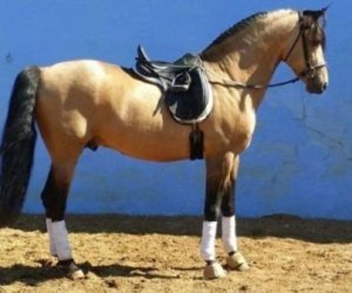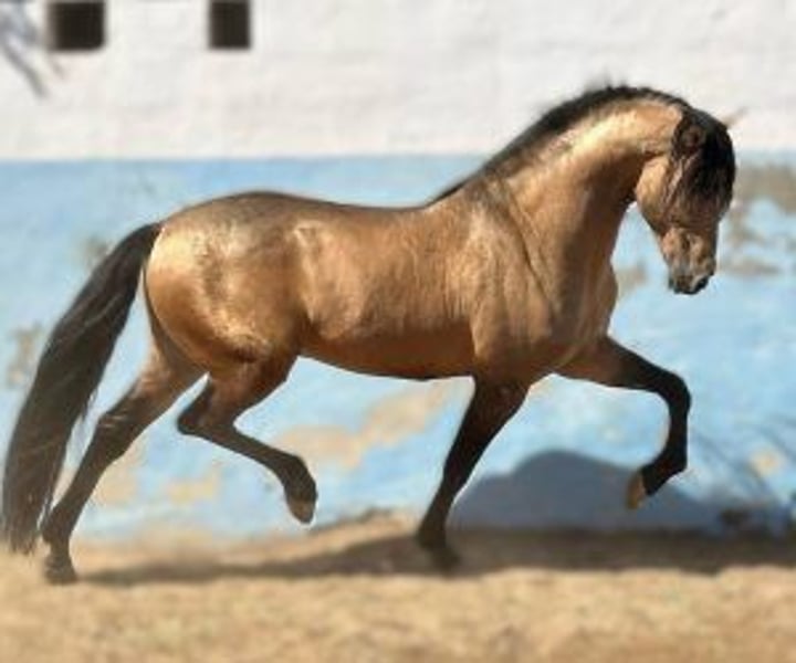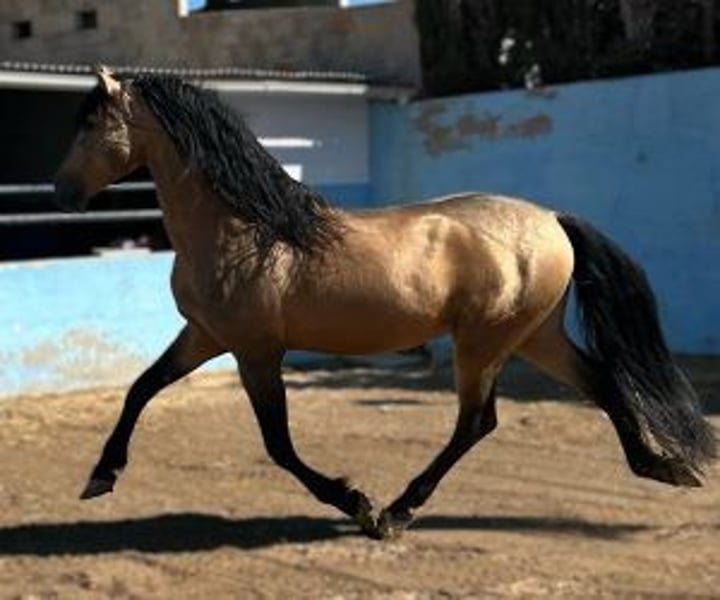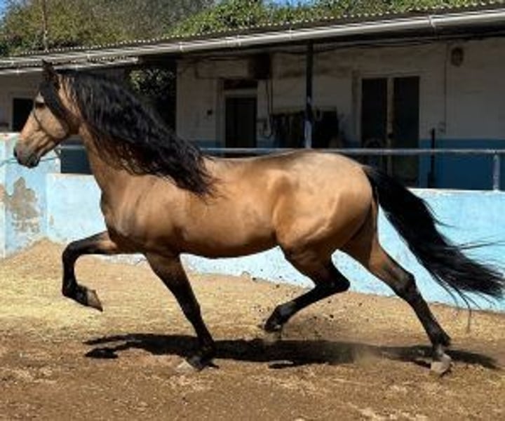 Exceptional Isabelle Stallion: Beauty and Character Ideal for Breeding Are you looking for a stallion who not only improves the quality of your breeding but also brings beauty and good character? We present to you an impressive buckskin stallion, baroque in style and blessed with sublime movements, who could be the perfect addition to your breeding program. This horse stands out not only for his vibrant buckskin coat and impressive physique, but also for his exceptional temperament. He is friendly, easy to manage and has a cooperative disposition, making him an ideal candidate for breeders wishing to pass on desirable qualities to their offspring. In addition to his aesthetic appeal, this stallion has excellent genetics to produce diluted coat offspring, confirmed by his analysis of coat: ggEeAACCrppchchzz. With him you have the opportunity to breed foals who will inherit not only his spectacular color but also his robustness and baroque elegance. This horse is perfect for those looking for a stallion that combines functionality and aesthetics, offering the best of both worlds. His ability to move with grace and power, added to his ease of management, makes him a rare gem in the world of horse breeding. IberHorse.com: We connect breeders with dream stallions. If this buckskina stallion captured your interest and you are considering expanding the quality and beauty of your breeding, do not hesitate to contact us. If you would like to see some of his offspring we will be happy to send you photos so you can appreciate the quality this stallion can offer. We are here to help you achieve your breeding goals with the perfect partner.