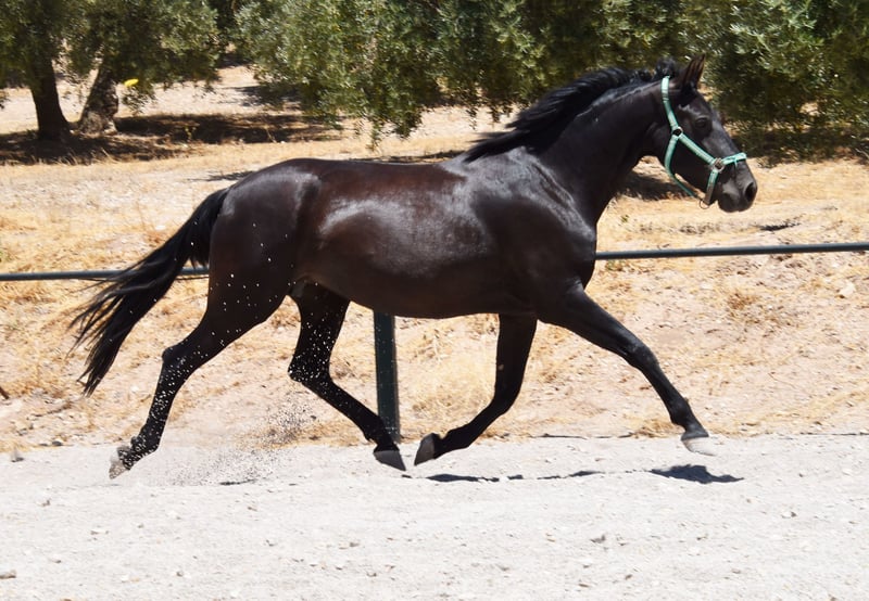 lieber Charakter, roh, steht draußen, spezielle Farbe, gute Bewegungen und Abstammung, klein, Abstammung: Yeguada Militar, Yeguada Puerta Alta, hat mehrere qualifizierte Vorfahren www.elegante-andalusier.com