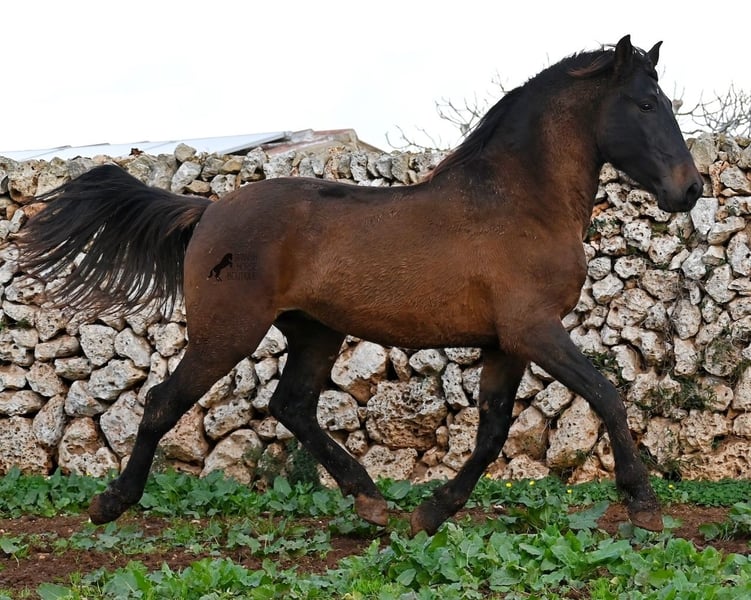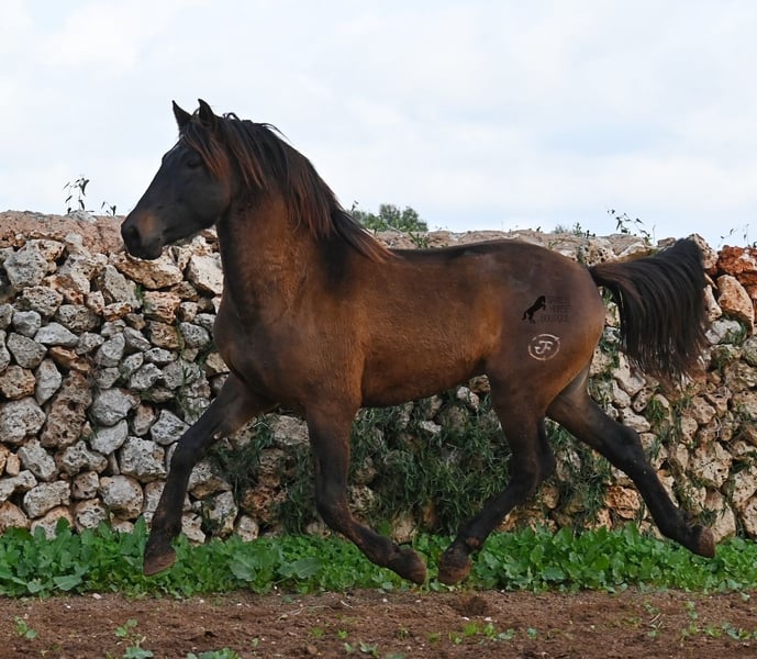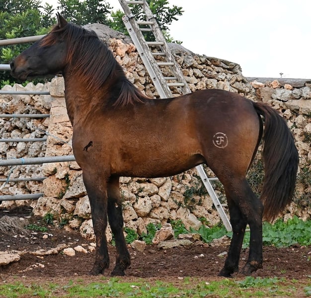 Dieser 2023 geborene PRE Hengst (Andalusier mit Rassenachweis der ANCCE), ist ein wahrer Hingucker. Er hat Charme, Esprit, Ausdruck, ist sehr barock für sein Alter, schwebt aber dabei mit einer Leichtigkeit über den Platz, da braucht man nicht viel Fantasie, wie er sich später im Viereck tun wird. Er ist fast schwarz unter seinem plüschigen Winterfell, mit einem ganz kleinen Stern auf der Stirn, den er meist unterm Schopf versteckt und ein ganz dezentes weißes Abzeichen hat er auf einem Hinterfuß. Sein barockes Exterieur ist jetzt schon beeindruckend und der Junge weiß, dass er gut aussieht, denn er präsentiert sich ganz stolz und zeigt seine beste Bewegung, trotz rutschigem Untergrund. In seiner Abstammung, finden wir viel Escalera Blut und sogar den Mejorante Hengst Dominante XVI. Das typische Feuer, gepaart mit Menschenfreundlichkeit und sanfter Stärke der Escalera, sieht man auch deutlich an ihm. Der Züchter legt großen Wert darauf, dass die Hengste bis mindestens 3 Jahre in der Hengstherde aufwachsen. So kommt es, dass er bei der Regensaison auf Menorca plüschiges Fell und etwas Panier im Fell hat, aber nur ein Indiz auf das natürliche Aufwachsen ;) Mit aktuell 159cm, wird er noch an die 165cm heranwachsen und dabei für viele Sparten interessant werden, da er zwar barock, aber keinerlei schwerfällig ist. Es besteht die Möglichkeit, dass er vor Ort noch antrainiert wird und aufs Reitpferdeleben vorbereitet wird. Für all jene die keinen Hengst halten können, besteht natürlich auch die Option der Kastration vor Ort. Sein Standort ist Menorca. Videos und Abstammung gerne auf Anfrage. Gerne organisiere ich vor Ort eine AKU, Beritt, Kastration, Transport oder auch ihre Reise, sollten Sie persönlich zum Anschauen kommen. Details dazu gerne auf meiner Seite oder im Gespräch. Saludos aus Spanien