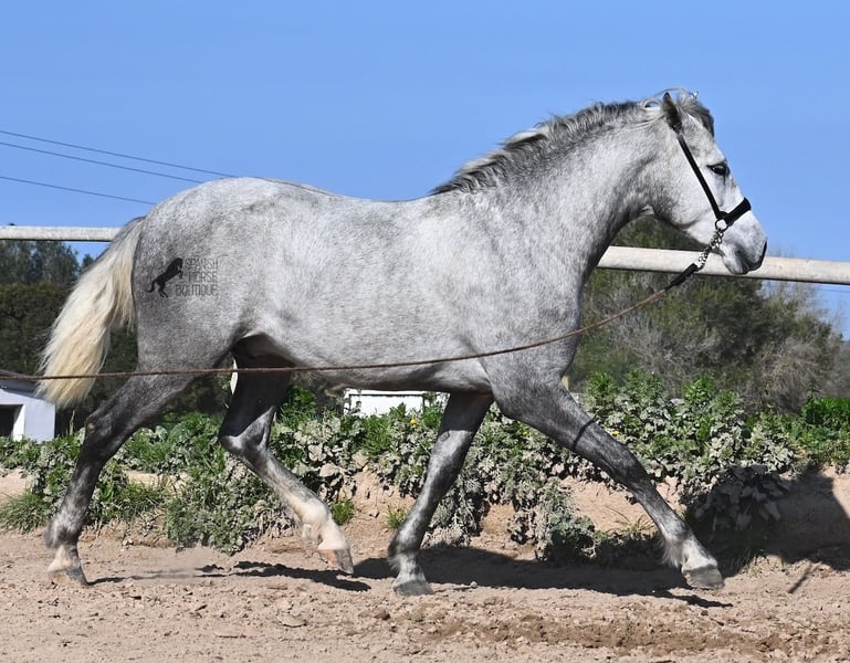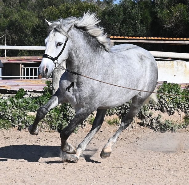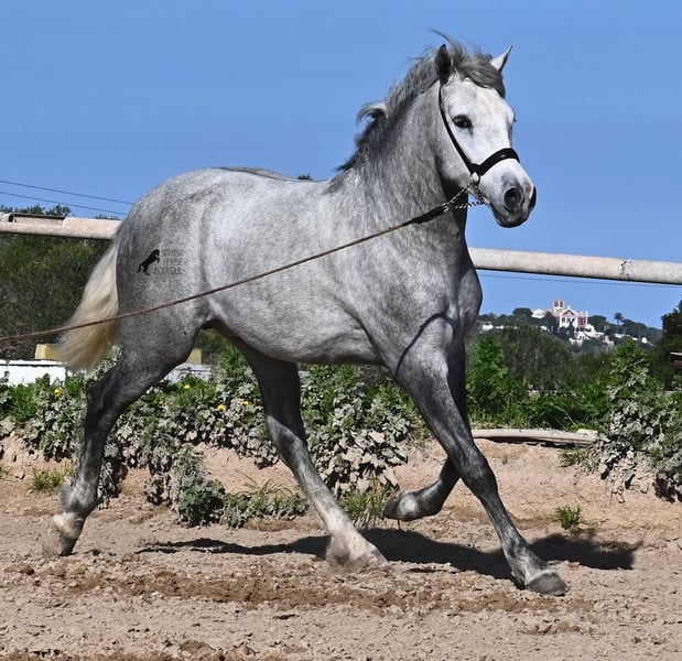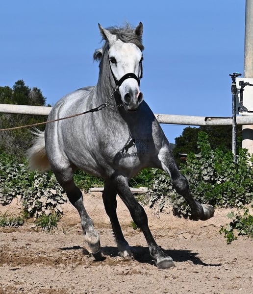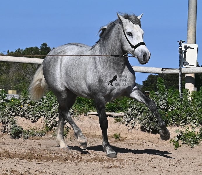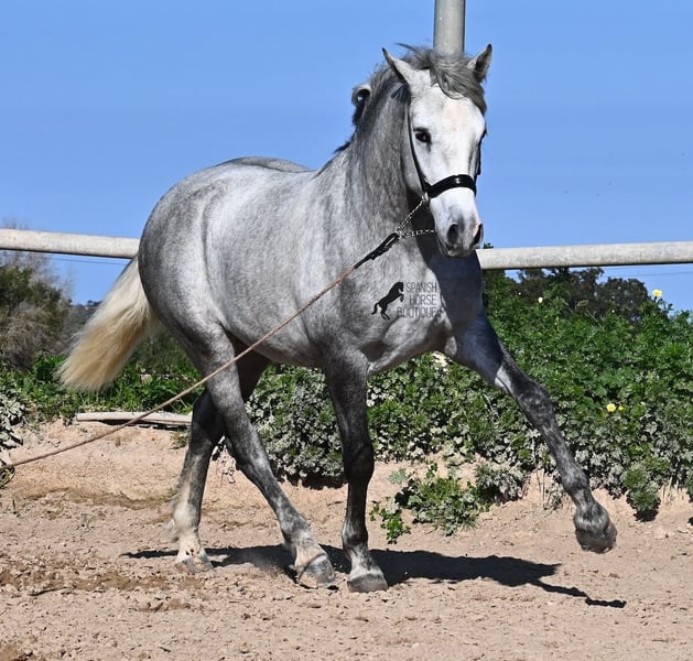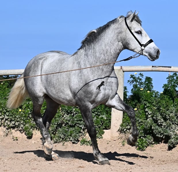 This PRE stallion (Andalusian with ANCCE breed certificate), born in 2023, is a very well-behaved sweetheart! He lived in the herd until December 2024 and is now stabled for a short time to give him a stable basic education before he goes back into the herd - or even better, to you :) He takes the hustle and bustle on the farm in his stride, whether it's dogs, children, tractors or a horse dashing around freely, because just when we wanted to move him, a horse colleague got out and kept the farm on its toes ;) He knows how to be lunged on a halter and can be handled everywhere. He has already been loaded as a weanling and transported to his current stable, so he is no stranger to driving a trailer. At currently 154cm, he will not be too tall, but he will certainly have a nice baroque look, as he already has the baroque exterior for a youngster. He is currently in Menorca! Videos and pedigree available on request. I would be happy to organize an AKU, castration, transport or even your trip if you come to see him in person. Details can be found on my website or in conversation. Saludos from Spain