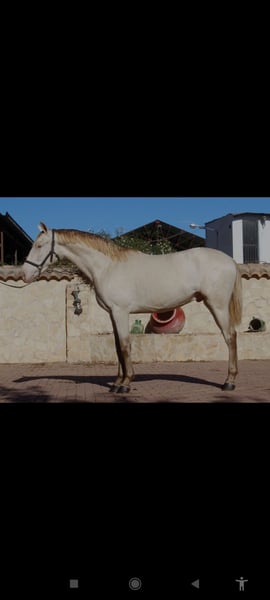 Étonnamment magnifique, élégant étalon PRE de couleur exceptionnelle Baya Perla. Il vient du Campo et a été récemment mis en boxe, où il apprend les bases. Il atteindra une grande taille, estimée à 1,68/1,70 m. Si vous êtes intéressé, n'hésitez pas à me contacter. Vous pouvez également rendre visite à l’éleveur en Espagne si vous le souhaitez.