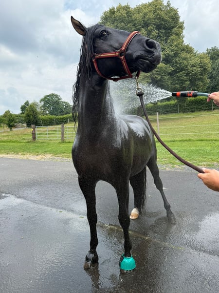 Verkaufe jungen, vielversprechenden PRE-Hengst, geboren im Jahr 2023. Dieser elegante Rappschimmel besticht durch seine ansprechende Erscheinung und sein vielversprechendes Fundament. Mit einem Stockmaß von 164 cm bietet er eine ideale Größe für vielseitigen Einsatz, sei es im Freizeitbereich oder später im Training für höhere Anforderungen. Seine freundliche und aufgeschlossene Art macht ihn zu einem angenehmen Begleiter, der sich durch seine Ruhe und Bereitschaft auszeichnet. Aufgrund seiner guten Abstammung und seines vielversprechenden Körperbaus bietet dieser junge PRE-Hengst großes Entwicklungspotenzial. Er ist bestens geeignet für Reiter, die einen zuverlässigen Freizeitpartner suchen, der auch in Zukunft noch weiter gefördert werden kann. Bei Interesse freue ich mich auf Ihre Kontaktaufnahme, um weitere Details zu besprechen und einen persönlichen Eindruck zu ermöglichen. Auf Grund seines Alters ist er natürlich noch roh , aber kennt schon bodenarbeit usw, und hat da wirklich sehr viel Lust drauf!