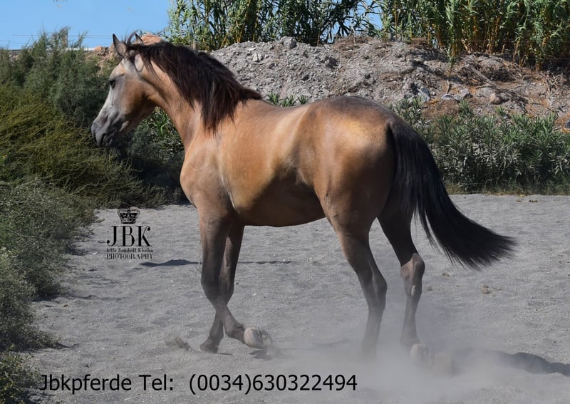 Nazareno es un excelente joven semental con muchas cualidades. Ya es bastante grande, pero aún así es absolutamente ágil y maniobrable. Nazareno se maneja bien consigo mismo y se mueve de manera equilibrada para su corta edad. Creció en un grupo y ahora ha sido estabulado. Desde hace poco conoce el trabajo en cuerda y está abierto a todo lo demás. Es un placer trabajar con él, ya que es un caballo inteligente y astuto que aprende rápidamente. Además, en su línea tenemos a Ermitaño, un semental élite aprobado de la cría de Escalera de la Escalera. Lazo Díaz Llavanero y Paco Martí también se encuentran en su línea de sangre. Nació el 07.04.2023.