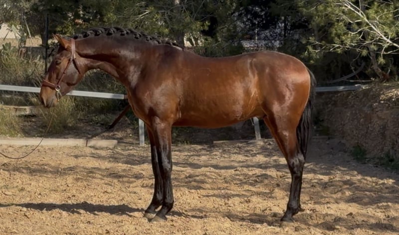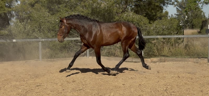 DUQUE ABS Junger Pferd, reinrassiger Andalusier, geboren am 20.04.2023, kastanienfarben, zeichnet sich durch seine hervorragende Rassequalität, solide Konstitution und vielversprechende Zukunft aus. Nachweisliche Abstammung: Sohn von Faraón CCCLXXI und Enkel von Trovador IX, aus der Zucht Valdeolivas. - Aktuelle Größe: ca. 1,70 m - Sehr gute Beinstellung und Knochenbau - Starke und korrekte Körperhaltung - Seriöses, ausgeglichenes und gut entwickeltes Fohlen * Bewegungen von hoher Qualität: Großer, definierter Schritt, elastischer, weit schwingender Trab mit viel Raumgriff, ausdrucksstark, sowie ein natürlicher, ausgeglichener Galopp. Sehr edles Wesen, leicht zu reiten und mit positiver Einstellung. Derzeit in Valencia. Weitere Informationen und Videos auf Anfrage. Telefon: 635814665 / 644917689