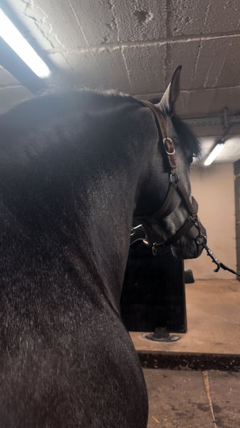 Mooie 3-jarige P.R.E. hengst, die sinds enkele weken voorzichtig onder het zadel wordt gereden. Hij toont zich zeer helder van geest, vriendelijk en heeft een prettige werkhouding. Voor zijn jonge leeftijd is hij evenwichtig en maakt hij dagelijks positieve vorderingen. De hengst beschikt over drie goede tot zeer goede basisgangen, met veel kwaliteit. De stap heeft momenteel nog wat tijd nodig om volledig te ontspannen, wat leeftijds- en opleidingsgebonden is. Draf en galop zijn actief, goed uitgebalanceerd en met een mooie mechaniek. Hij is makkelijk in de omgang, braaf in het dagelijkse hanteren en geeft de ruiter een veilig gevoel. De in de advertentie getoonde video is gemaakt tijdens zijn eerste verblijf in deze hal, wat zijn rust en goede zenuwen benadrukt. Goede röntgenfoto’s zijn aanwezig. De hengst staat momenteel in Luxemburg en kan, na overleg, graag worden voorgesteld.