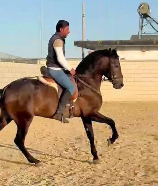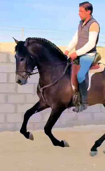 Dieser junge PRE ist korrekt mit Trense geritten und macht in jeder Situation Freude. Seine Bewegungen sind bergauf und typvoll mit aktiver Hinterhand. Mit Piaffe und Kompliment wurde bereits begonnen; sein spanischer Schritt ist bereits sehr ausdrucksstark. Auch im Strassenverkehr zeigt er sich nervenstark und gelassen (siehe Ende vom Video). Seine sehr guten Röntgenbilder stehen auf Wunsch zur Verfügung. Ein typvoller PRE mit fantastischen Bewegungen für Hohe Schule, working equitation und Freizeitreiter mit Anspruch. Näheres gerne unter WhatsApp 0175 861 45 35