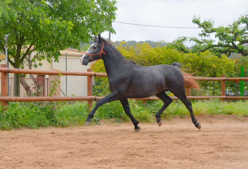 CORRIOL II potro PRE entero tordo de 3 años 162 altura recien entrado del campo con buenos movimientos y morfologia empezando su desbrave y empezandose s montar