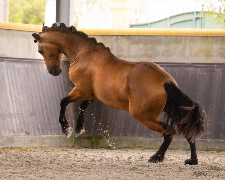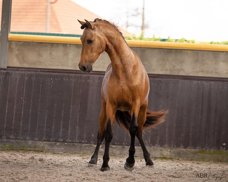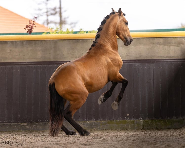 **Sales Advertisement: Dreamy PRE Stallion for Sale** **Features:** - **Breed:** Pura Raza Española (PRE) - **Gender:** Stallion - **Year of Birth:** 2022 - **Color:** Buckskin - **Height:** 165 cm - **Usage:** Dressage, Leisure, Working Equitation This wonderful stallion impresses with his appealing color and harmonious appearance. He stands at 1.66 m tall, has a great presence, and is a fine "gentleman" when working. He has been worked from the ground and is now being gently backed. He comes from excellent conditions. If you are interested or need further information, we look forward to your message. Viewings are possible by appointment. **Don't miss this opportunity!**