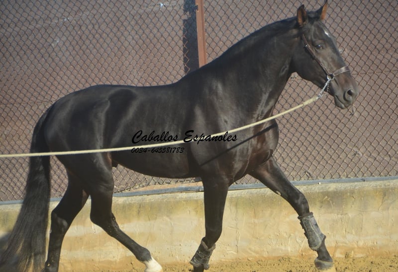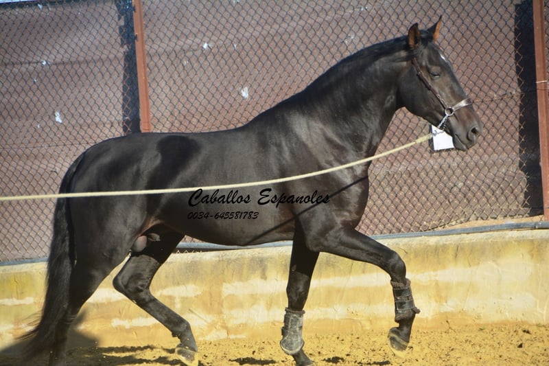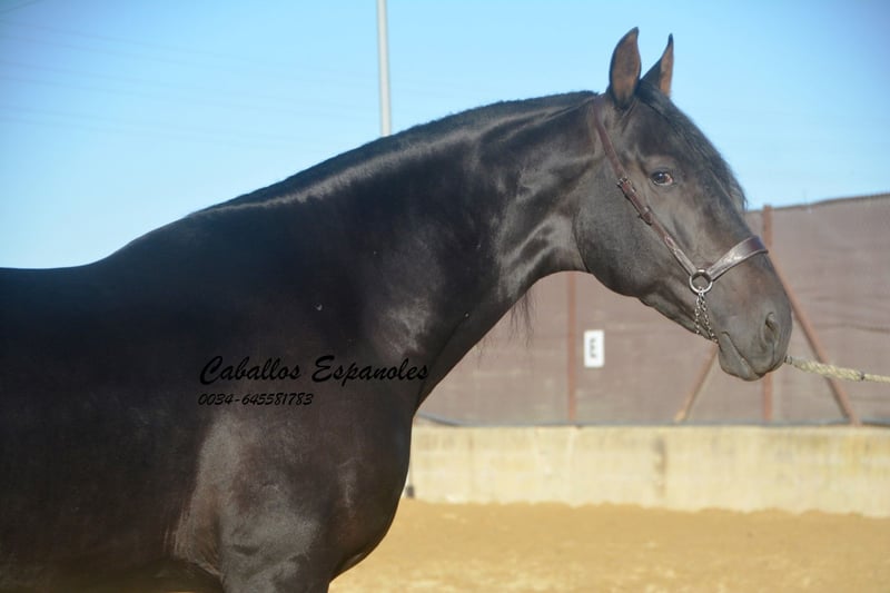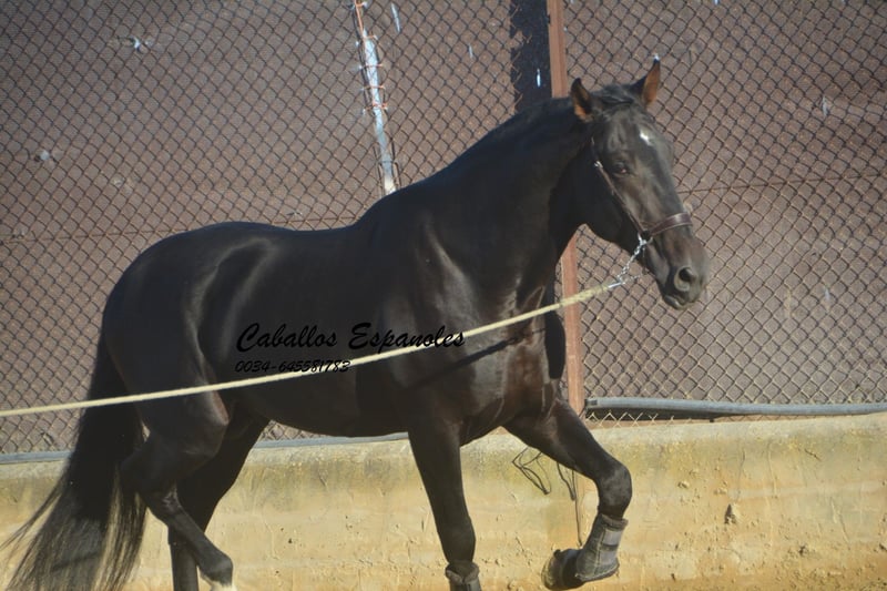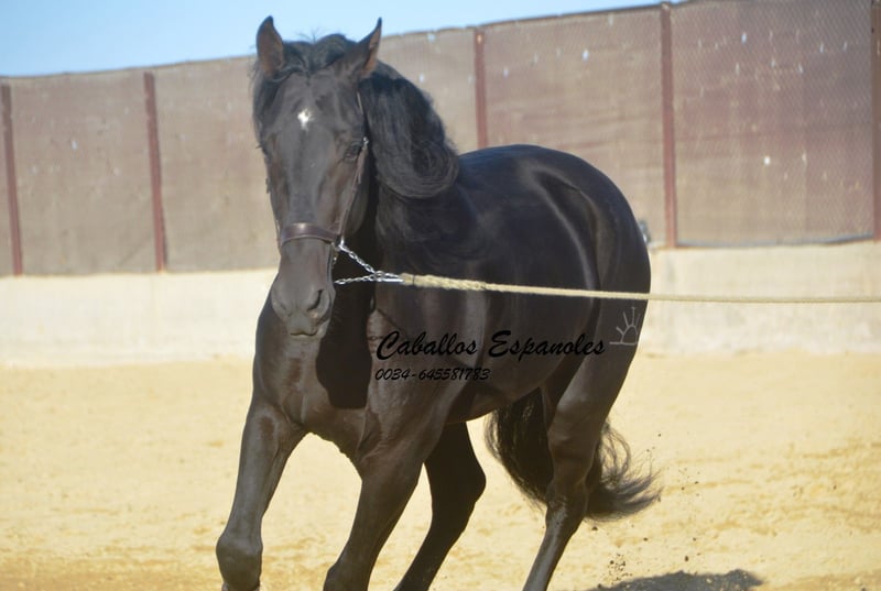 Large-framed, beautiful PRE stallion with a harmonious build. He will become an impressive Spaniard. The stallion is affectionate and well-behaved, always attentive to people and in a good mood. He is equipped with three good basic gaits. The young horse has been gently started under saddle. He is now ridden without a lunge line. He immediately gives a very trustworthy feeling. Motorcycles have often revved loudly on the neighboring property, but this did not impress him at all. A really great guy looking for a great person. The price is also very interesting. Pedigree: Sire is a Torreluna, whose sire is Hacendado and PamperV (both Marín García). The dam is from Nero Maynou II - last photo. The horse is being sold on commission. He can remain in training with us if desired. A pre-purchase exam can be organized at short notice. International transport available.
