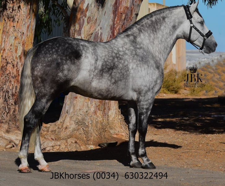 Dieser prachtvolle PRE Hengst aus dem Gestüt El Ancla wurde am 28.02.2021 geboren. Er ist ein sehr großes Exemplar seiner Rasse, und steht aber dennoch im barocken Typ. Valenciano überzeugt nicht nur mit seinem tollen Gangwerk, sondern auch mit seinem gelassenen Charakter. Ein absolut liebenswertes Pferd, das sehr gut erzogen ist und überhaupt nichts verkehrt macht. Mit Duque CXIII aus der Yeguada Las Arenas und Educado X aus der Guardiola Zucht haben wir in seiner Blutlinie 2 Elite Hengste der Rasse vertreten. Das spricht für Qualität und spiegelt sich auch in seinen Röntgenbildern wieder. 10 an der Zahl ohne Befund, aktuell vom Oktober 2025. Weitere hochwertige Exemplare aus der Bohorquez, El Ancal und die Guardiola Zucht runden das Rassebild perfekt ab.