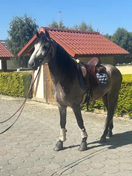 **Sales Advertisement: PRE Stallion for Sale** For sale is a beautiful PRE stallion, born in 2021. With a height of 160 cm and his elegant dapple gray coat, he is a real eye-catcher. This talented stallion is excellently suited for dressage and already shows promising approaches in his training. His friendly nature and willingness to learn make him an ideal partner for ambitious riders. He is well-mannered, easy to handle, and has already gained some experience under saddle. If you are interested or need further information, please feel free to contact me. Visit us and see for yourself this amazing horse!