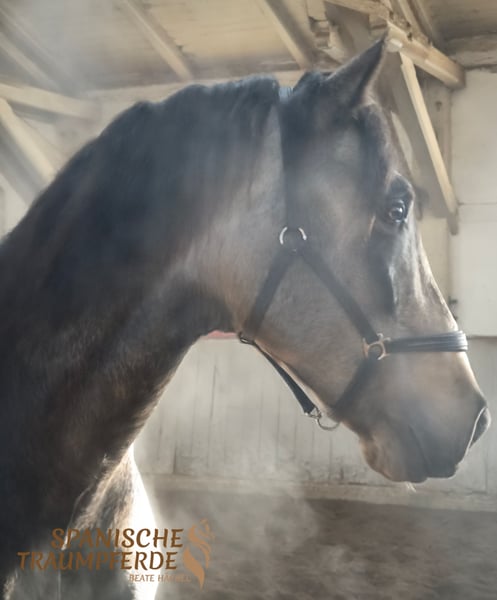 Ein ganz besonderes und wunderbares Wesen ist unsere fünfjähriger gekörte PRE-Hengst ✨ RENE SH✨. Wer eine Perle zum Weiterausbilden sucht, hat mit diesem zauberhaften PRE-Hengst das richtige Pferd gefunden. Dieser ausnehmend schöne Kerl überzeugt mit einem sehr harmonischen Exterieur mit taktvollen, ausbalancierten Gängen, dazu mit einer extravaganten Fellfarbe. ✨RENE SH✨ ist ein Pferd für Liebhaber des etwas großramigeren PRE-Pferdes mit einem feinfühligen, sensiblen Charakter, aber mit voller Hingabe zu seiner Bezugsperson. Wer das Vertrauen und das Herz von RENE gewinnt, dem schenkt er seine ganze Seele. Er ist ein aufmerksamer Partner und stets bemüht, alles richtig zu machen. Im Umgang begegnet RENE Fremden anfangs mit sanfter Zurückhaltung, doch wer sein Herz berührt, erlebt eine innige Verbindung zu diesem zauberhaften Wesen. Bei der Arbeit beweist dieser Schöne eine unglaubliche Nervenstärke und Gelassenheit. RENE SH ist bei seinem Züchter im Herdenverband gesund groß geworden und wird derzeit altersgerecht gefördert. Unser charmanter Herzensbrecher ✨RENE SH✨ ist derzeit Basis auf Trense geritten. Röntgenbilder sind vorhanden. Standort: 23795 Traventhal Ein Kennenlernen unseres RENE ist nach Terminabsprache nahezu jederzeit möglich. Für diesen Termin nehmen wir zum Schutz unserer Pferde eine Pauschale von 50,-€.