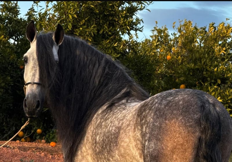 Are you ready for this breathtaking Fairytale Horse? This 5 years old, 1,60m high PRE Stallion is a real Stunner! With his baroque neck- & exterieur, his amazing manes, his smal head & incredible character he s definitely the perfect choice for the lovers of the original spanish breed! He is good basic ridden and a real gentleman under the saddle as well as in handling! For sure he s coming from best hands and a hugh vetting with all x-rays! Cat. 15 - 20k Location: València, Spain - Transport can be arranged worldwide! For more Informations contact us via What s App ➡️ +34 622 509 702 We speak 🇬🇧🇩🇪🇪🇸