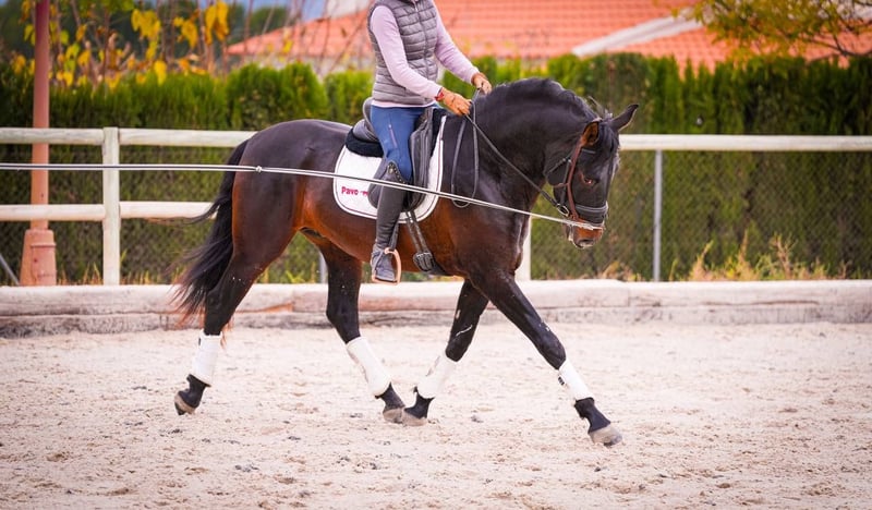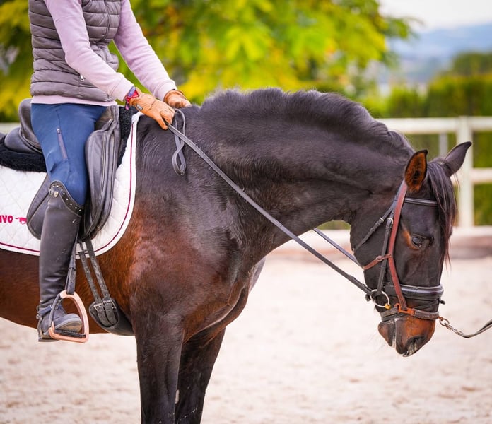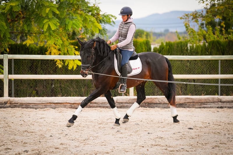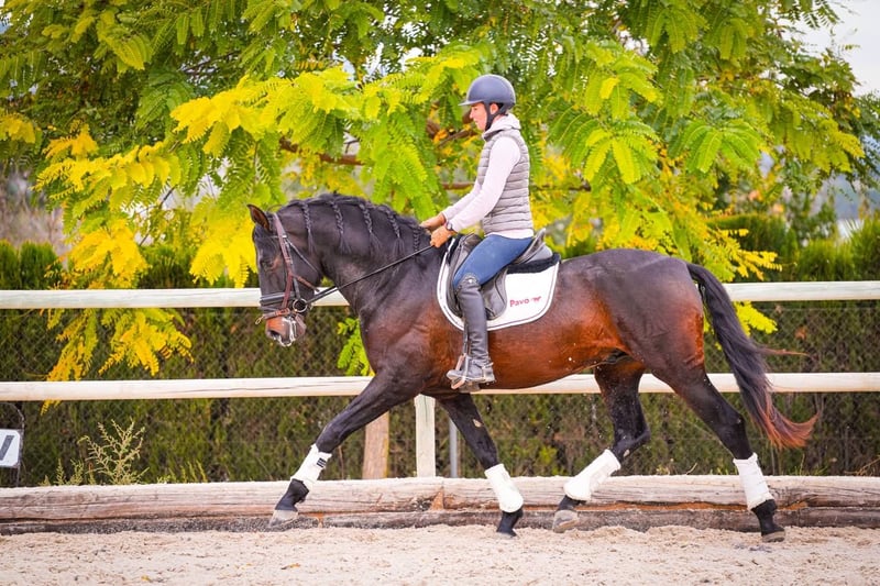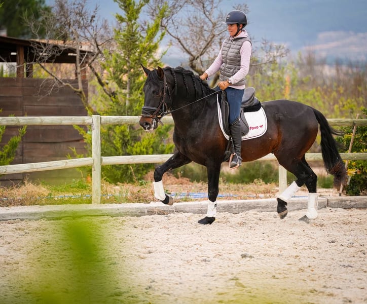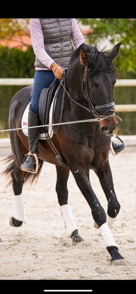 Ridered: PRE Ragnar is a 3.5 year old, licensed, dark bay PRE (Pura Raza Española) stallion who has been ridden under saddle for two months. With a very good pedigree, Ragnar stands out for his outstanding movements, which indicate great potential in dressage. His training under saddle has only recently begun, which means that he is still in the early stages of his dressage development. Despite his youth, he is already showing promising approaches, especially in his gait quality and movement dynamics. Ragnar has a full X-ray, which is important for potential buyers or riders to get an insight into his health. His dark brown coat color gives him a striking appearance, and his good pedigree suggests a high genetic quality and predisposition to dressage. As a PRE, he probably possesses the characteristics typical of this breed, such as temperament, stamina and a natural tendency to gather, which makes him particularly suitable for dressage. Overall, Ragnar represents a promising choice for riders looking for a young, talented horse with potential for a career in dressage. His previous training and health condition form a solid basis for his further development in this demanding sport.