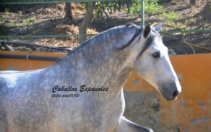 This stunning Andalusian PRE stallion is looking for his new home. He has a harmonious build, stands on a correct foundation, and is of baroque type. The young gentleman has been ridden in basic gaits and can perform some lateral movements. He is very comfortable in the saddle and easy to ride, both in the arena and in the field. Pedigree: only the finest bloodlines He bears the Centurión brand, with the famous Fer Bago as his grandsire. His pedigree includes 2 elite stallions and 8 licensed stallions or mares. The horse is being sold on behalf of the owner. He can remain in training with us if desired. A pre-purchase veterinary examination will be organized shortly. International transport available.