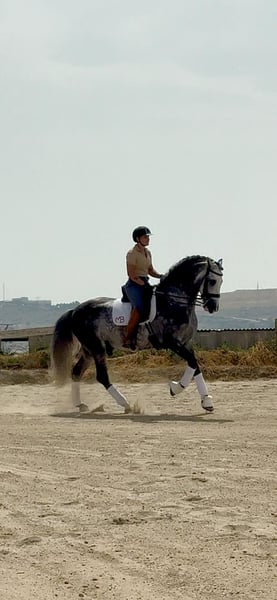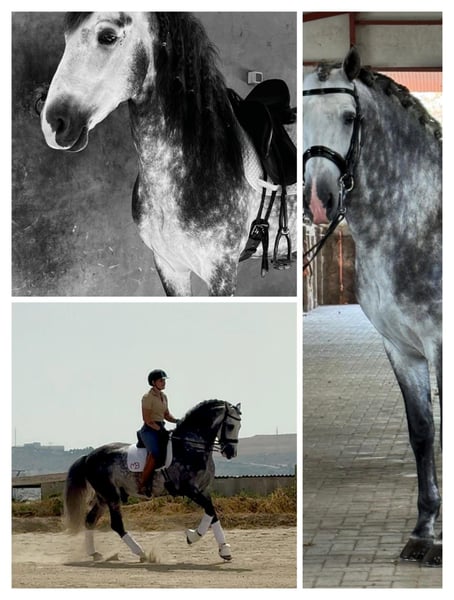 Magnificent 16.1 hh dapple gray gelding with an elegant presence and extraordinary nobility. This exceptional individual stands out for his classic beauty, harmonious movement, and exceptionally balanced temperament. He possesses an imposing presence, always attentive and eager to please. His noble and reliable temperament makes him an ideal partner for both dressage and leisure riding. He is respectful, gentle, and has a very good head, qualities that make him easy to handle even for less experienced riders. Additionally, he responds very well to aids, showing a willingness to learn and progress. Perfect for those seeking a horse with heart, elegance, and distinction. A true performer who captivates not only with his dapple gray coat but also with his noble soul and impeccable attitude at all times. The horse is available for all kinds of tests, demonstrating excellent behavior and aptitude in any environment. We speak English, German, and Spanish, and offer comprehensive assistance with transportation and logistical details, including free pickup at Alicante Airport.