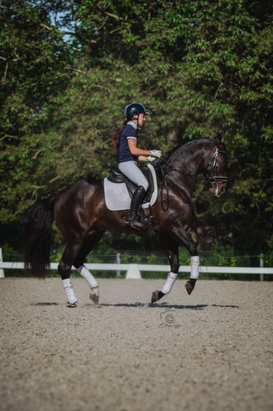 🌟 ANTARES DE SCUDERIA – Available in IAC (ERC Morette, Ternat) 🌟 PRE stallion, 5 years old – Son of the famous Poeta de Susaeta Antares de Scuderia embodies the modern PRE: frame, flexibility, power, and an exemplary temperament. He stands out with exceptional results for an Iberian, able to compete against German horses, and possesses extraordinary charisma: he never goes unnoticed. 🏆 Exceptional Performances • Winner in young horse competitions at 4 and 5 years old, with scores above 80% • Consistently winning in the MCI circuit, confirming his regularity and superiority in his category • Results also achieved against German horses, highlighting his extraordinary potential for a PRE 🧬 Prestigious Origins • Sire: Poeta de Susaeta, international reference and elite PRE stallion • Dam: Rima de Susaeta, best mare of our breeding • Pedigree featuring several elite stallions, the highest distinction of the PRE stud book ✨ Transmitted Qualities • Modern locomotion: uphill canter, powerful hindquarters, expressive trot, ample walk • Harmonious model, solid frame, and ideal neck orientation • Brave, generous, and reliable temperament, consistent both in competitions and at home • Charisma and presence: a horse that naturally draws attention • Worked under professional supervision 🎯 Our Breeding Vision Antares is a PRE that proves his qualities under saddle and in competitions, not just in free movement. We select our stallions after having worked with and evaluated them under saddle to verify their locomotion, temperament, and reliability. Too often, horses are judged solely on videos in free movement, which does not reflect their true quality. With him, you are sure to pass on horses made for sport, reliable and cooperative, and not just impressive to look at. 💡 An ideal choice to bring frame, locomotion, temperament, model, and charisma to your breeding.