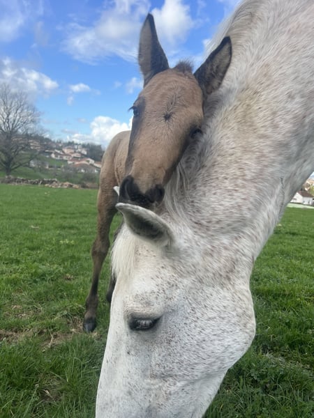 🔆Quercus🔆 Male foal, Lusitano cross with PRE (Andalusian) Born on February 22, 2026, weaning expected at the end of the year. Coat color: Isabelle 🔅Sire: Nelson MSL – purebred Spanish horse 🔅Dam: Easy – Lusitano type Expected height at maturity: approximately 16.1 hh. 🔆 Quercus has a very expressive head. He is a lively foal! He has a fantastic temperament. A true warrior spirit. He is lively, curious, and intelligent. This horse will be ideal for sport, dressage, or leisure riding. He will be sold handled and with basic ground training (leading, grooming, trailer loading). Will be microchipped, vaccinated, dewormed, and trimmed. Transport possible. 🔆 Currently available for reservation with flexible payment options until weaning. 📍Viewings in Haute-Vienne (87), just 15 minutes from Limoges. Feel free to contact me for more information, photos, videos, or to arrange a visit.