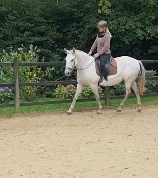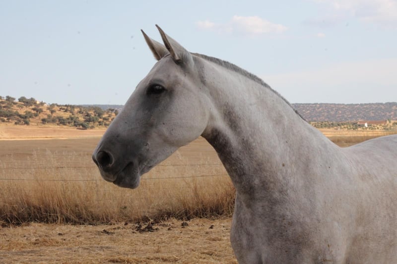 Sanfte Schimmelstute mit wertvoller Abstammung. Bonita ist eine unserer ersten Zuchtstuten und entstammt einer beeindruckenden Linie, die sich bis zu den edlen Cartujano-Pferden zurückverfolgen lässt. Im Frühjahr 2023 kam sie gemeinsam mit ihrem ersten Fohlen zu uns auf das Gestüt. Sie ist eine kräftige, kompakte Stute mit solidem Fundament, einem schön geformten, breiten Hals und einem angenehmen Stockmaß von 1,57 m. Ihr ausgeglichenes Wesen und ihre gute Statur machen sie zu einer vielseitigen Partnerin für Freizeit und Familie. Im Frühjahr 2025 erwartete Bonita erneut ein Fohlen. Leider kam es bei der Geburt zu Komplikationen durch eine Fehllage, sodass das Fohlen nicht überlebte. Bonita selbst musste in dieser Situation sehr um ihr Leben kämpfen, hat sich jedoch dank ihrer außergewöhnlichen Robustheit und Stärke vollständig und beeindruckend erholt. Wir sehen Bonita als ideales Familien- oder Freizeitpferd, das mit ihrem sanften, menschenbezogenen Wesen und ihrer Zuverlässigkeit auch für Anfänger geeignet ist. Natürlich soll sie ihre weitere Ausbildung fortsetzen, damit alles noch mehr zur Routine wird. Geländeritte werden derzeit regelmäßig geübt – sowohl in der Gruppe als auch alleine. Bonita zeigt sich im Umgang ausgesprochen lieb und unkompliziert. In der Herde ist sie rangniedrig und sehr sozialverträglich. Sie wird alle fünf Wochen vom Hufschmied bearbeitet, regelmäßig entwurmt und kennt sowohl Boxenhaltung als auch den Offenstall – Letzteren bevorzugt sie eindeutig. Bei weiteren Fragen stehen wir gerne zur Verfügung. Übernachtungsmöglichkeiten, um Bonita in Ruhe kennenzulernen, sind vorhanden.