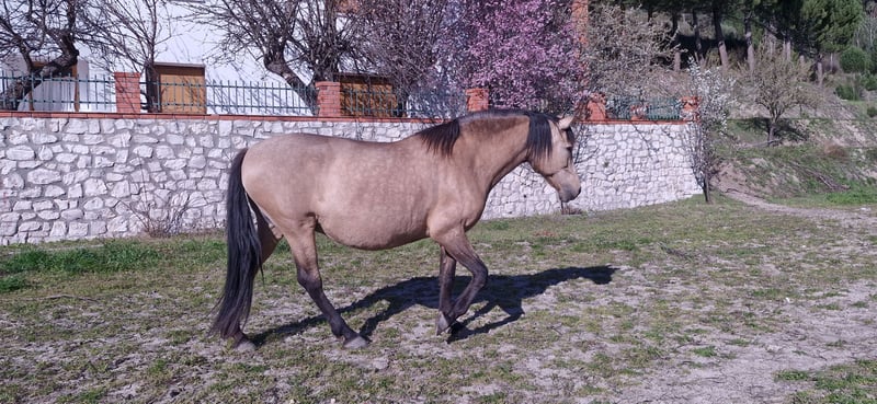 ¡Oportunidad de adquirir una hermosa y elegante yegua para tu ganaderia PRE de capa diluida! Características principales: - Raza: PRE (Pura Raza Española) - Sexo: Yegua reproductora - Año de nacimiento: 2013 - Color: Bayo - Alzada: 158 cm - Genética: Excelente linaje y pedigree Esta yegua destaca por su belleza y su capa Baya,. Ideal para la reproducción, sacando siempre capas diluidas.. Se encuentra en perfectas condiciones y lista para su nuevo propietario. Para más información y detalles, no dudes en contactarnos. ¡No pierdas la oportunidad de tener una ejemplar tan especial!