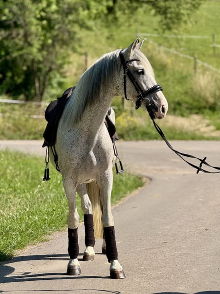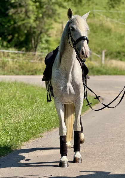 Faraona not only impresses with her dream appearance but also with her gentle and honest nature. If you are looking for a horse that is always clear-headed and fearless, while also bringing a lot of enthusiasm and energy, you have come to the right place! Suitable for dressage, trail riding, working equitation, liberty work, and small jumps. If needed, we also offer a transition phase with training and riding lessons. If you are interested, please feel free to contact us anytime at +49 1520 2833968. Please note that to protect our horses from riding tourism, we charge €45 for trial rides/presentations of our horses.