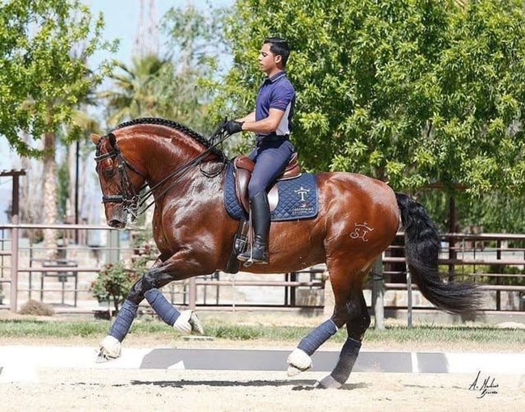Calida Brisa ist eine atemberaubende braune reinblütige 2024 PRE Andalusier-Stute mit einem außergewöhnlichen Pedigree! Sie wurde für die Dressur gezüchtet und stammt aus einem vollen Spektrum spanischer Champions und bewährter Produzenten von Dressurchampions. Ihr erstaunlicher Vater, Distinguido Trujillo, stammt vom #1 Züchter in den USA, Sabas Trujillo, ebenso wie ihr mütterlicher Großvater. Ihre Zukunft als Leistungsperspektive wird durch eine beeindruckende Abstammung von Champions unterstrichen: Remache, Yaco de Torreluna, Yaco II, Ganador VII, Acquilles III und Vasallo II. Calida ist eine athletische, leichte und raffinierte Stute mit korrekter und ausgewogener Konformation. Sie hat ein super ruhiges und selbstbewusstes Temperament – genau wie ihre Mutter. Diese Stute wird groß sein (der Vater ist 1,78 m) und wird zum Zeitpunkt der Entwöhnung fast 1,42 m erreichen. Sie befindet sich in der Nähe der Grenze zu Buffalo, NY, in Ontario, Kanada. Die Anmeldung bei der ANCCE ist in Bearbeitung.
