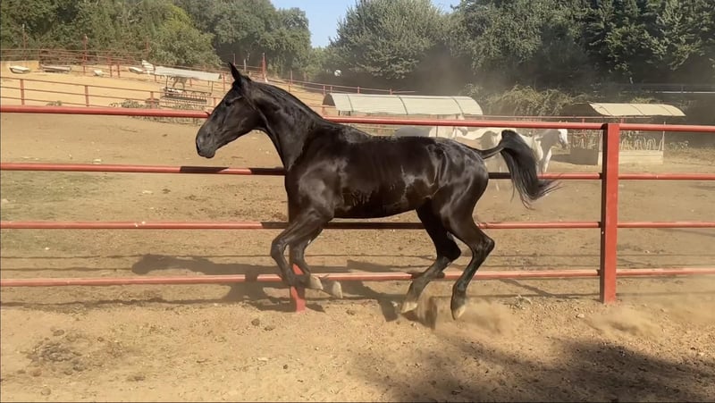 Nach langem Überlegen haben wir uns entschlossen, eine unserer besten Stuten zu verkaufen. Zarzomora Onuba. Sie ist PRE, volle Papiere. 4 Jahre alt. Zugelassen zur Zucht. Sie zeichnet sich durch ihre Bewegungen aus. Sie bewegt sich sehr gut. Vollkommen schwarz, ohne weiße Abzeichen. Sehr gute Blutlinie von Huron IX (einer der wenigen Elite PRE Hengste). Eine sehr gute Option für diejenigen, die ein Pferd mit Power suchen, um in der Dressur das höchste Niveau zu erreichen. Sie kann auch eine perfekte Option für die Züchter sein, die ihre Zuchtprogramme verbessern wollen. Sie kann hochqualitative schwarze Fohlen hervorbringen. Der Transport kann leicht organisiert werden. Mehr Informationen erhalten Sie bei uns. Besuchen Sie unsere Facebook-Seite Yeguada Sierra Onuba.