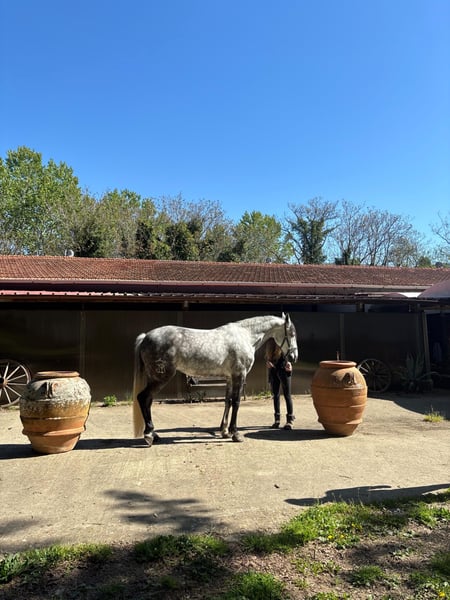 Wysokość w kłębie: 160 cm Dokumenty ważne, książeczka konia ANCE oraz aktualne szczepienia (w tym na wirusa West Nile). Zdrowa, dobrze ułożona, energiczna i wrażliwa klacz. W ostatnim roku była pod opieką w Stajniach Rosano, gdzie rozpoczęła naukę jazdy w chodzie naturalnym w ramach klasycznej szkoły jazdy. Bardzo niezawodna podczas spacerów: nie kopie, nie gryzie i nie reaguje agresywnie na obecność innych zwierząt. To towarzyska klacz, dobrze pracuje zarówno samodzielnie, jak i w towarzystwie innych koni. Powód sprzedaży: posiadam już innego konia i nie mam wystarczająco czasu, aby się nią odpowiednio zająć. Szukam osoby, która zaopiekuje się nią i będzie kontynuować jej rozwój. Zdjęcia i filmy dostępne. Możliwość jazdy próbnej i wizyty u weterynarza dla naprawdę zainteresowanych. Region Toskania W przypadku poważnego zainteresowania proszę dzwonić Stajnie Rosano: +39 392 0365774