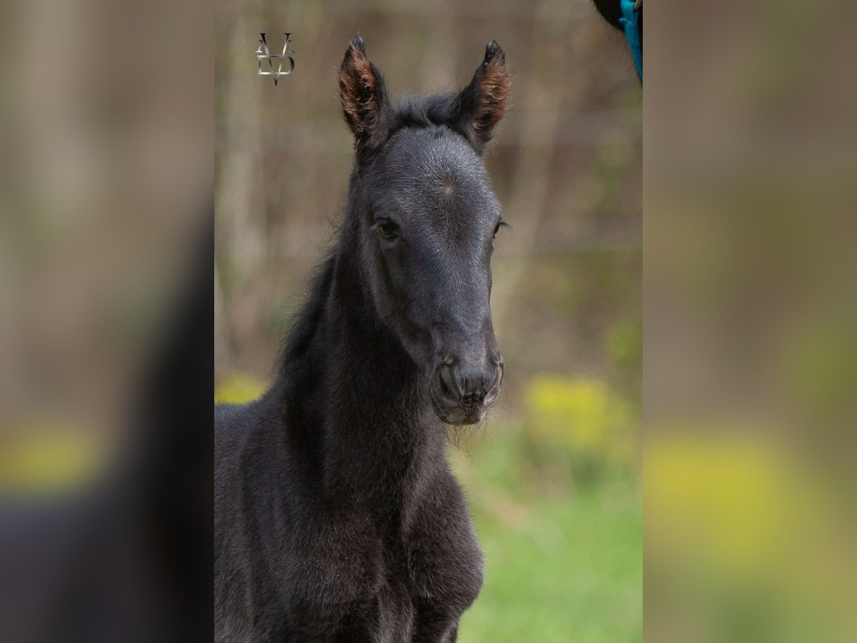 Querida VMD Wunderschöne rein spanische Zuchtstute, mit schwarzer Färbung. Querida wurde im März 2026 in unserem Zuchtbetrieb geboren. Sie stammt von einer hervorragend aufgebauten Stute ab, die 1,65 m groß ist, sowie von einem Hengst von MONITOR DE LA ESPADA, der 1,76 m groß ist. Querida wird groß und gut gebaut sein – eine sehr schöne Fohlen, die sich für Freizeit, Dressur etc. eignet. Sie wird vor dem Absetzen entwurmt, geimpft und gepflegt. Sie wird regelmäßig gehandhabt, führt an der Hand, gibt die Hufe usw. Sie ist absetzbar, ab September 2026, vorbehaltlich der Entwurmung und Impfungen. Bei Interesse kontaktieren Sie uns bitte.