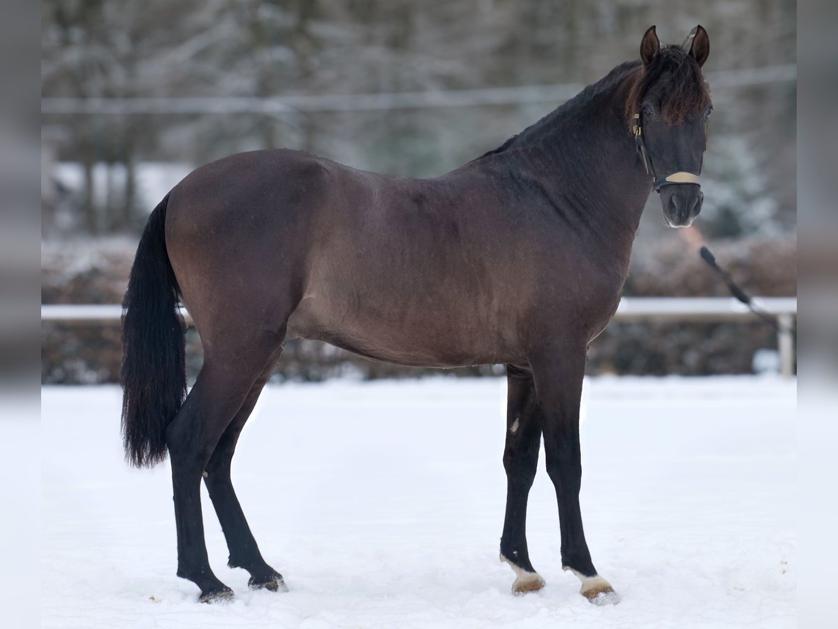 Name: Bravo Aran Breed: P.R.E. (Pure Spanish Horse) Gender: Gelding Date of Birth: January 1, 2023 Age: 3 years Height: 15.6 hh Color: Dark Chocolate Brown Pedigree: With pedigree Temperament: Friendly and people-oriented, eager to learn, reliable, patient, curious, intelligent, brave, calm Training/ suitability: Lunged, suitable for leisure riding, dressage, baroque riding, working equitation Trail Experience: Trustworthy, fearless, resilient, good in groups Health: Dewormed, vaccinated, barefoot, eczema-free, teeth checked, osteopathically treated Stabling: Box stall, paddock Special Features: Good basic gaits, stands well for farrier and loading, herd-compatible Please note that the above characteristics are based on our personal assessment and do not constitute a guarantee. Price: €7,900 (gross) Have we piqued your interest? To give you a better impression of Bravo Aran, we would be happy to send you a video of him riding. Of course, we are available for a detailed description of the horse, personal consultation, and to answer any questions you may have, also by phone. Feel free to contact us anytime via WhatsApp or call us at: +49 151 19487595 Our phone hours are daily from 7:00 AM to 1:30 PM and again from 8:00 PM. We look forward to hearing from you! A clinical or radiological pre-purchase examination can be carried out by your veterinarian of choice. Bravo Aran can be safely and comfortably delivered to his new home. We will handle all necessary preparations and transportation so that your new horse arrives stress-free, well-cared-for, insured, and in good health. Currently, we offer a carefully selected range of sale horses. With us, you are sure to find your dream horse. Feel free to visit our website at: www.marvinsroyalhorses.de Dear customers, we are happy to introduce you to our horses. You are welcome to lead, groom, saddle, longe, do groundwork, or try riding in the riding hall, on the arena, or in the field to get to know your new family member better. The fee is €40 per horse, with each additional horse €30, and will be refunded upon purchase. Our address: Ferdinand Grube 50 53577 Neustadt-Wied Google Maps: marvinsroyalhorses