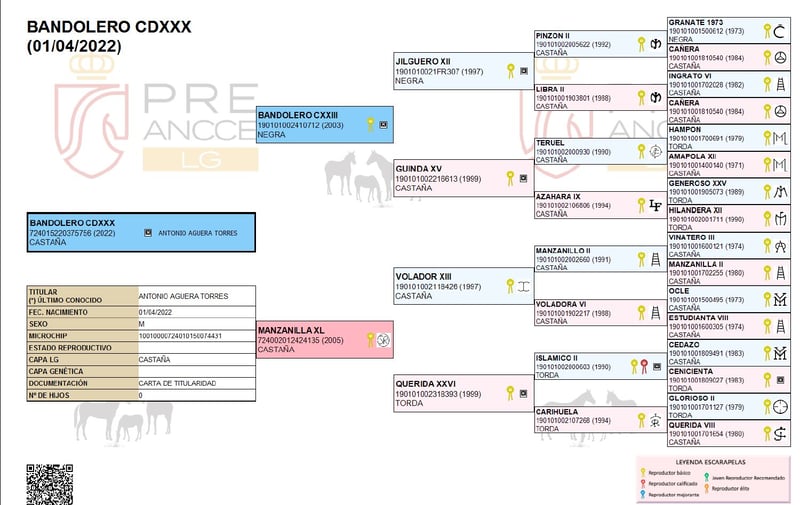 Raza: PRE Nombre: Bandolero Sexo: Macho castrado Altura: 1,61 m Fecha de nacimiento: 01.04.2022 Color: Castaño Precio: 5.500 € Padre: Bandolero CXXIII, hijo de Jilguero XII Madre: Manzanilla XL, hija de Volador XIII Bandolero, Un caballo muy elegante, con mucha expresión y movimiento, que con su carácter amigable conquista a todos en seguida. Bandolero está ligeramente montado en trabajo de doma y es un alumno ejemplar. Tiene una gran tranquilidad básica, lo que hace que trabajar con él sea aún más divertido. Es muy receptivo a nuevas experiencias y le encanta la variedad. Montar sin silla, caminar sobre una lona, perros que corren a su lado, tractores que pasan: Bandolero quiere estar allí. También ha realizado paseos en ruta y en situaciones "espeluznantes" se muestra más curioso que asustado, prefiriendo explorar que huir. Es cómodo en la silla y, de por sí, tiene un trote en subida muy bonito. Aún está en pleno crecimiento y se espera que siga desarrollándose. Está acostumbrado a vivir en manada, es juguetón y amigable. Incluye examen clínico veterinario y radiografías (se vende a un precio muy por debajo de su valor debido a un hallazgo en las radiografías). Contacto: Finca Barock, Tel. 0173-696 31 81, 56291 Wiebelsheim