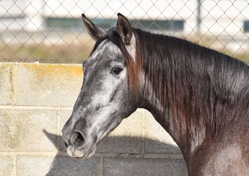 lieber Charakter, in den Grundgangarten geritten und Gelände, springt, etwas Spanischer Schritt und Piaffe, hat bereits Röntgen und ist Piroplasmose negativ, Abstammung: Yeguada Sierra Morena, Jose Enrique Muños de Albelda www.elegante-andalusier.com