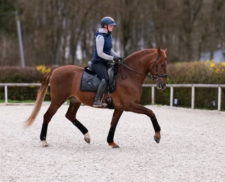 Name: Duque JR III Breed: P.R.E. (Purebred Spanish Horse) Gender: Gelding Date of Birth: April 5, 2019 Age: 7 years Height: 1.60 m (approximately 16.1 hh) Color: Chestnut Pedigree: with pedigree documentation Temperament: personable, eager to learn, reliable, curious, intelligent, brave Training/Suitability: ridden, dressage, leisure riding, baroque riding, working equitation Trail Experience: confident, fearless, experienced both alone and in a group Health: dewormed, vaccinated, barefoot, eczema-free, teeth checked, osteopathically treated Stabling: box stall, paddock Special Features: good basic gaits, very comfortable rider seat, farrier and loading confident, herd-compatible Please note that the above characteristics are based on our personal assessment and do not constitute guaranteed features. Price: €8,900 (gross price) Have we piqued your interest? To give you a better impression of Duque, we are happy to send you a riding video. Of course, we are available for a detailed description of the horse, personal consultation, and to answer all your questions by phone. Feel free to contact us anytime via WhatsApp or call us at: +49 151 19487595 Our phone hours are daily from 7:00 AM to 1:30 PM and again from 8:00 PM. We look forward to hearing from you! A clinical or radiological pre-purchase examination can be performed by your veterinarian of choice. Duque can be safely and comfortably delivered to his new home. We take care of all necessary preparations and transportation so that your new horse arrives stress-free, well cared for, insured, and in good health. Currently, we offer a carefully selected range of horses for sale. With us, you are sure to find your dream horse. Visit us also on our website: www.marvinsroyalhorses.de. Dear customers, we are happy to introduce you to our horses and offer grooming, tacking, lunging, ground work, and trial riding in the riding hall, on the arena, or in the field to get to know your new family member better. The fee is €40 per horse, with each additional horse €30, and will be refunded upon purchase. Our address: Ferdinand Grube 50 53577 Neustadt-Wied Google Maps: marvinsroyalhorses