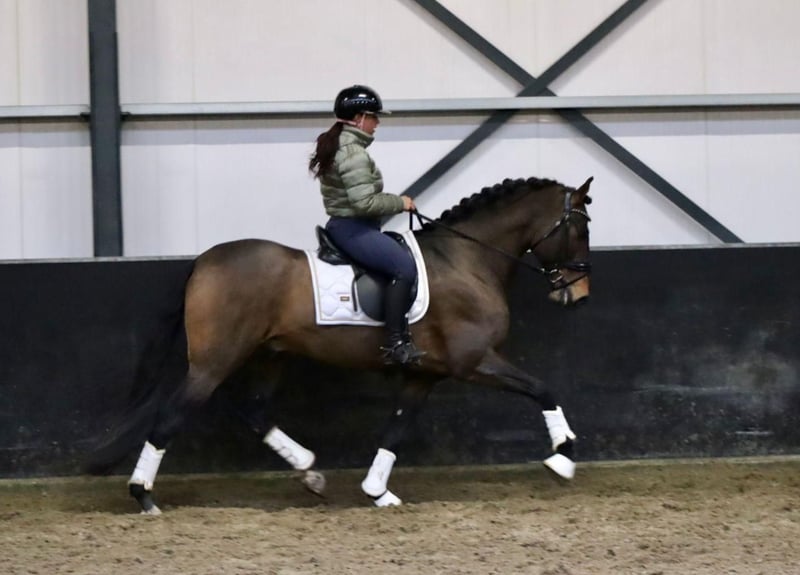 Il tuo *Perfect Match* ti aspetta! ✨ Pura Raza Española (PRE) gelding Età: 8 anni Altezza: 164 cm Salute: radiografie pulite La sua disponibilità ad apprendere cose nuove e a svilupparsi lo rende un compagno fedele che porta sempre gioia. Sebbene sia particolarmente adatto per il dressage, questo gelding è imbattibile anche nel tempo libero. Con il suo temperamento equilibrato e il suo carattere tranquillo, è un vero allrounder che si comporta bene sia nel campo che in maneggio. Offre un equilibrio fantastico tra **temperamento** e **tranquillità**, rendendolo sia un eccellente cavallo da tempo libero che una futura stella nel mondo dei concorsi – questo gelding si adatta perfettamente alle esigenze del suo cavaliere. **Il tuo cavallo dei sogni ti aspetta!** Bautista RN - Proveniente dalle migliori linee di sangue, con antenati noti come Remache XIII, Yaco II e Pedido. Eccellente esteriore, costruito correttamente, con genetica chiara e pedigree documentato.