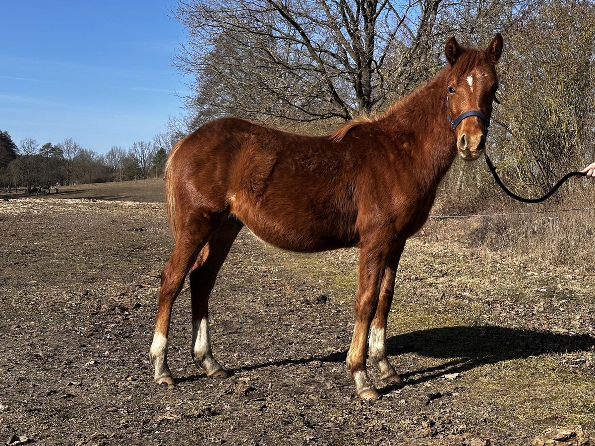 Sprzedam ogierka 1/2 AQH Urodzony 11.05.25 Docelowy wzrost około 145cm Matka - kuc wierzchowy Ojciec - AQH - Poco Mack Jock