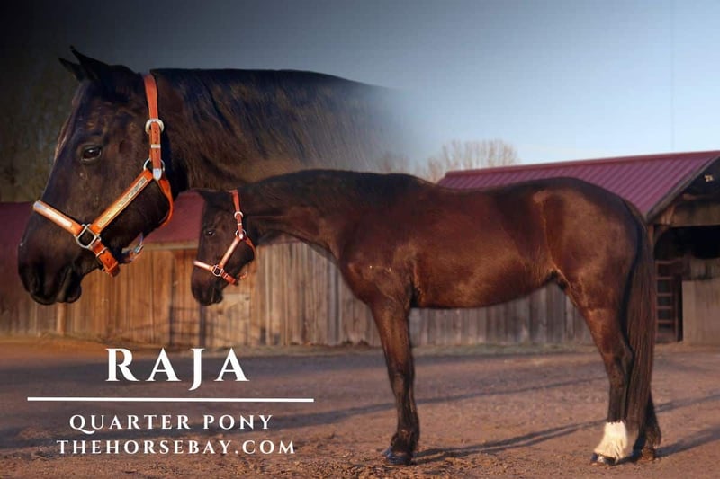 OPEN BIDDING ON THEHORSEBAY,COM. SALE ENDS ON 04/23 More information is available on the website, including an UTD vet inspection, Coggins, video, images, and the owner's contact information to ask questions, request information, or make arrangements to come to visit. Raja is a 6-year-old, black, Quarter pony who stands at 14 hands and has an absolute heart of gold!? This pony has a ton of try, is extremely sweet, is the first one to meet you at the gate, and gets along with all other horses and livestock! Raja is VERY safe, calm, and sweet for the whole family but versatile enough to be competitive in many disciplines. Raja has a great walk/jog/lope in the arena, will stop off of just your voice, and is light and supple in the bit. Raja goes English or Western and knows her collection and frame up. She has great tuck and scope over a course and has already jumped up to 2’3 “with room to improve. Raja would make a very cute 4-H or pony club prospect! Raja has also been trail ridden all over, up in the mountains, downtown Fort Collins, you name it—she’s seen it. She is excellent in a group or by herself. She is not herd-bound and will lead or follow. Raja has seen bikes, traffic, town commotion, wildlife, etc. Raja will cross anything you put in front of her and is not scared of flags/tarps, etc! She loves the water, has crossed rivers and bridges, and we’ve even taken her swimming! Raja is the absolute perfect size for a small adult or kiddo wanting to get started in their new equine adventure or further their skills and looking for a step-up horse!