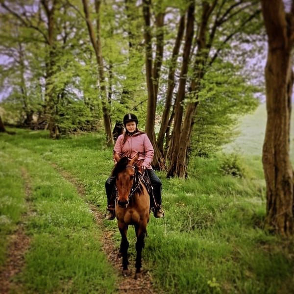 Quarterpony mare, geboren in 2018, 156 cm, droomkleur vos, ZSSE paspoort, regelmatig gevaccineerd en onder behandeling bij de tandarts, hoefsmid en laad- en losplek is bang voor nieuwe situaties. Arya heeft een degelijke basisopleiding gekregen, zowel vanaf de grond als onder het westernzadel. Ze houdt van vrijheidsdressuur en lange buitenritten. Ze is zeker in het terrein, zowel alleen als in een groep. Wel heeft ze wat vertrouwen nodig van de ruiter in het terrein. Momenteel wordt ze bereden door een moeder en een 12-jarig kind. Ze kent kinderen in het algemeen, maar is geen puur beginnerspaard; ze heeft iemand nodig die haar af en toe geruststelt, anders kan ze wat onrustig worden. Ze wil altijd gefallen en iedereen tevredenstellen. Ze heeft goede basisgangen, kent longeerlijn, leidlijnwerk, trail en natuurlijke hindernissen op de grond, evenals vrijheidsdressuur. Onder het zadel is ze western gereden, kent de basis en trail. Vanwege tijdsgebrek is ze vooral in het terrein bereden. We hebben ook lessen gevolgd en ze één keer op een concours laten zien. Arya staat momenteel in een open stal, was in elke kudde gemiddeld hoog in rang en goed sociaal. Ze kent boxenstallen, maar daar kan ze niet goed mee overweg op de lange termijn. Een weekend is geen probleem. Haar voederbehoefte is vrij laag; ze neemt niet snel toe in gewicht, zelfs niet op 24 uur wei. Daarom heeft ze in de winter zeker ruwvoer ad libitum nodig. Ik zoek voor mijn kleine vriendin een 5-sterren thuis, met mensen die tijd voor haar willen nemen. Bij voorkeur gevorderde recreatieruiters. Ik zie haar niet in de pure wedstrijdsport, omdat ze daar niet zoveel plezier aan had. Ze doet alles wel, maar haar plezier ligt vooral bij buitenritten, trail en vrijheidsdressuur. Afstamming: Vader: Jo Buckskins Son (AQH), door Buckskin Dear, inmiddels 29 jaar en nog solide in het terrein als recreatiepaard bij de eigenaar. Moeder: Ravanna Sweet Fay (QP), uit Prince CL Buckley merrie (AQH) x onbekend. Tot LK1A EWU gereden, allround succesvol, vooral in trail. Met Arya geef ik haar zadel, pad, bit, peesbeschermers, poetsmateriaal, halster en dekens mee. Huidige locatie is 30900 Wedemark. Arya wordt aangeboden vanaf voorjaar 2026, omdat ze tot die tijd beschikbaar blijft.