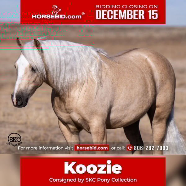 🎄𝐓𝐇𝐄 𝑯𝒐𝒍𝒊𝒅𝒂𝒚 𝐂𝐋𝐀𝐒𝐒𝐈𝐂🎄 Happening now thru MONDAY | DECEMBER 15th - Available EXCLUSIVELY on HorseBid's website! For more details and to register visit: www.Horsebid.com CONSIGNOR CONTACT: SKC Pony Collection 806-282-7093 LOCATION: Canyon Texas BREED: Quarter Pony REGISTERED: No COLOR: Palomino HEIGHT: 12.2 AGE: 6 GENDER: Gelding Koozie — The Pony With Heart, Try, and All the Talent in the World Koozie is the undisputed barn favorite—loaded with personality, charm, and more ability than most full-sized horses ever dream of having. He’s broke broke, the kind that lopes around with a gorgeous, rhythmic cadence, stays soft in his face and sides, and rides with total ease and feel. He’s got cute, slow spins, a deep, correct stop, and can long trot right alongside the best of the ranch riders. But my very favorite thing about Koozie is his heart. It’s huge, kind, and steady—he wants to please every single ride. He doesn’t have a lazy bone in his body, yet he’s not a forward or rushy type either. He’s that perfect blend of willing and relaxed…exactly how we like them. Add in the fact that he’s flat-out gorgeous with a luxurious mane and tail, and he turns heads everywhere he goes. Koozie has been part of our family for several years and has earned his place as one of the most dependable partners we’ve ever owned. Our kids have used him for early morning gatherings, sorting jobs, branding calves, and riding out with Dad to check cattle. He’s had a real job, just like a big horse—and it shows in everything he does. His manners are those iconic, old-school ranch-horse manners: respectful, honest, and ready to go to work. His work ethic is unmatched. He crosses water with ease and is sure-footed in steep, rocky country—never hesitating, never rushing, always careful and confident. He’s also completely safe around traffic, dogs, and unexpected wildlife. Nothing ever seems to ruffle him; he simply carries on with that steady, dependable nature he’s known for. He’s the same honest pony no matter what—even after time off. We’ve given Koozie up to two months off during the winter, and he saddles right back up just as broke, gentle, and reliable as ever. Our kids have also taught Koozie some fun tricks—he can smile on cue and curbside mount, happily side-passing over to whatever rock, fence, or mounting block they point him toward. He rides bareback, double, or even bridleless with total ease, always staying gentle, tuned-in, and trustworthy. On top of all that, our 8-year-old daughter Saylor has taught Koozie to go English over small jumps and trot poles, and she has even used him to proudly carry the flag. And when it comes to rodeos, Koozie is a total rockstar—our littlest boy, 4-year-old Townes, has hauled him to junior rodeos to run barrels, poles, goats, and even help push calves. Koozie takes care of him every step of the way, giving Townes the confidence to try it all with a big smile on his face. This is a pony anyone would be proud to own—one that will teach your children what it’s like to ride a truly broke one. Safe, seasoned, stylish, and cool as they come… Simply put, Koozie is just plain cool. Please call Cheyenne @ 806-282-7093"