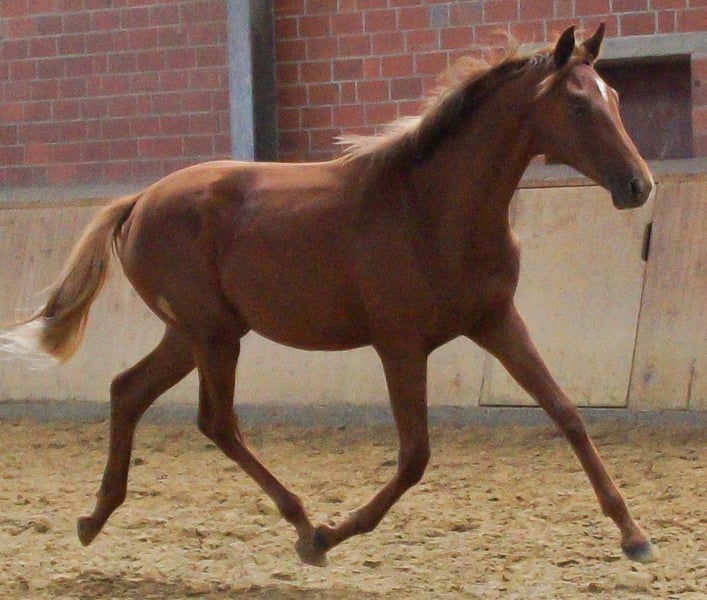Sexe : Jument Race : Cheval de selle rhénan Origine : Quantensprung x Quaside MD de DSP Quasi Gold MD Âge : née le 01.04.2024 Jument avec une excellente lignée en dressage Elle possède 3 bonnes allures Elle connaît l'ABC des poulains et est sociable avec les humains Elle se laisse mener et se met facilement le licol au pré. Pour plus d'informations, contactez le numéro 0176 62495567.