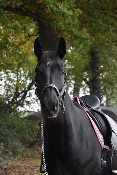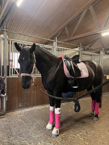 Zum Verkauf steht meine wunderschöne lackschwarze Stute Feengold, eine Tochter von For Gold x Giacomo v. Grannus. Nach reiflicher Überlegung habe ich mich schweren Herzens dazu entschlossen, meine Stute Feengold in passende, fördernde Hände abzugeben. Feengold ist grundausgebildet und befindet sich in einer harmonischen, kontinuierlichen Weiterentwicklung. Sie ist angenehm zu reiten, zeigt sich jederzeit motiviert, aufmerksam und lernwillig. Aufgrund ihrer hochwertigen Abstammung ist sie zudem auch für die Zucht interessant. Der Schwerpunkt ihrer bisherigen Förderung lag in der Dressur, wo sie sich aktuell sicher auf A-Niveau präsentiert. Mit den ersten L-Lektionen, insbesondere dem Außengalopp, wurde im Training bereits begonnen. Auch am Sprung zeigt sich Feengold sehr talentiert, übersichtlich und einfach zu händeln. Sie geht ehrlich zum Sprung, möchte zuverlässig auf die andere Seite und bringt dabei deutlich Freude an der Arbeit mit. Sie bleibt niemals stehen und möchte alles richtig machen. Dadurch ist sie vielseitig einsetzbar und auch für weitere Aufgaben, beispielsweise im vielseitigkeitsorientierten Bereich, gut vorstellbar. Im täglichen Umgang ist Feengold brav und unkompliziert. Ich wünsche mir für Fee einen Reiter mit einer sicheren reiterlichen Grundlage, der ihr klare Hilfen gibt und sie weiter fördern kann. Ebenso eignet sie sich sicherlich für ambitionierte junge Reiter, sofern eine kompetente Unterstützung durch Trainer oder erfahrene Eltern gegeben ist. Feengold wurde stets sorgfältig betreut: Die Zähne wurden zuletzt im April diesen Jahres gemacht, regelmäßige Physio- und Osteobehandlungen fanden statt. Anfang Dezember wurde ein großes Blutbild erstellt, welches ohne Auffälligkeiten ist und bei Interesse selbstverständlich eingesehen werden kann. Ein Probereiten ist nach vorheriger Terminabsprache jederzeit möglich. Um Reittourismus zu vermeiden, wird hierfür eine Gebühr von 25 € erhoben, welche bei Kauf selbstverständlich verrechnet wird. Passendes Equipment kann auf Wunsch miterworben werden, der Sattel wurde erst im Mai neu angepasst. Bei weiteren Fragen stehe ich Ihnen jederzeit gerne zur Verfügung.