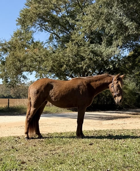 Disponible sur la vente aux enchères en ligne sur www.MagicHorseAuction.com Les enchères sont ouvertes dès maintenant jusqu’au mardi 25 novembre ! - Achat immédiat disponible ! *Le prix final sera déterminé sur le site de la vente* Coordonnées du consignateur : Southern Performance Horses, 706-963-9251 Lieu : Carnesville, Géorgie **Sweet Caroline** Caroline est une pouliche Rocky Mountain de 2 ans et demi, extrêmement douce et gentille. Elle a été correctement entraînée à la fois en manège et en extérieur, et est prête à accumuler des kilomètres en randonnée ou en compétition. Cette adorable pouliche s’attache parfaitement en longe et est formidable avec le maréchal-ferrant. Caroline possède de beaux pieds et des jambes parfaitement propres. Elle se charge calmement et en douceur dans notre remorque à marchepied. Elle a d’excellentes manières en box et se montre également sociable au pâturage, seule ou en groupe. Sur le sol, Caroline est affectueuse et aime la compagnie des humains. Elle s’entend bien avec tous types d’animaux de ferme et d’enfants. Elle a côtoyé divers petits et grands animaux d’élevage sans aucun problème. Nous l’avons emmenée en randonnée dans de vastes manèges et sur de nombreux sentiers, avec différents environnements et obstacles. Absolument l’un des plus beaux jeunes chevaux que j’ai eu la chance de posséder. Caroline a été monté par des enfants et est suffisamment facile pour qu’un enfant puisse la finir selon ses souhaits, ou qu’un adulte puisse la continuer à entraîner. Cette fille est prête à trouver un cavalier qui lui donnera sa propre famille ! Carnesville, Géorgie Livraison possible moyennant supplément, et le retrait sur place est toujours possible. Nous sommes également très heureux de vous aider à organiser le transport partout.