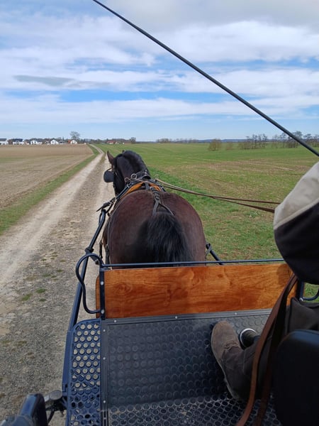Rocky (Hergo laut Pferdepass) ist eine imposante Erscheinung mit klarem Charakter. Er ist vorwiegend ein- und zweispännig gefahren wurde aber auch freizeitgeritten. Im 2-Spänner ist er das rechte Pferd, läuft aber genauso auch links. Ein Schwarzbrauner mit viel Ausstrahlung, korrekt im Fundament, sehr guter Schritt und absolut leistungswillig. Aktuell steht er in einer großen gemischten Gruppe im Laufstall und ist beschlagen. Gesundheitlich ist Rocky bestens versorgt: Hufe werden regelmäßig bearbeitet, er ist regelmäßig geimpft und entwurmt, die Zähne wurden zuletzt im November 2025 gemacht. Er gehört zu den leichtfuttrigen Pferden und ist Chef der Herde mit ca. 30 Tieren. Er wird schon alleine durch seine Größe und Kraft nicht als Anfängerpferd abgegeben und braucht eine klare und konsequente Führung im täglichen Umgang. Er ist ein Enkel des Vize-Weltmeisters Hengst Lokan, der mit seinem polnischen Fahrer B. Kwiatek 7-mal den FEI Top Driver Award der Einspänner gewonnen hat. Rocky hat schöne Grundgangarten, mit Vorwärtsdrang und guter Aufrichtung - sowohl geritten als auch gefahren. Abgabe aus gesundheitlichen Gründen der Besitzerin.