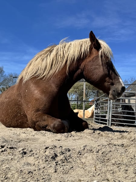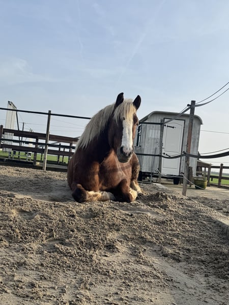 Lieve Schwarzwälder Fuchs te koop Met veel pijn in mijn hart ben ik op zoek naar een liefdevolle nieuwe eigenaar voor mijn lieve Merlin. Ik heb hem inmiddels ruim twee jaar in mijn bezit. Merlin is een lieve, sociale ruin in de omgang en dol op aandacht. Hij is sensibel en moet nog verder werken aan vertrouwen, maar wanneer je hem rustig en duidelijk begeleidt, bouwt hij een mooie band met je op en vertrouwt hij je volledig. Het is een speelse en werkwillige ruin die de basisgangen onder het zadel netjes beheerst. Hij loopt braaf en fijn te rijden. Merlin is bekend met groot en klein verkeer en schrikt hier weinig van. Buitenritten kent hij nog niet. Hij is trailer mak en staat rustig op de trailer, al kan het inladen soms wat extra tijd kosten. Gegevens: * Naam: Merlin * Geslacht: Ruin * Geboortedatum: 27 april 2019 (6 jaar) * Schofthoogte: 155,5 cm (gemeten april 2026) * Met stamboom en vader/moeder lijn * Altijd netjes ontwormd, bekapt en bij de tandarts geweest * Vrij van stalgebreken Een goed en passend huis is voor mij het allerbelangrijkst. Daarom zoek ik geen handelaren of maneges. Merlin wordt verkocht zonder toebehoren (eventueel over te nemen in overleg). Standplaats: Middenbeemster (Noord-Holland) Vraagprijs: €11.500 Transport mogelijk tegen vergoeding Bij serieuze interesse stuur gerust een bericht voor meer informatie, foto’s en video’s.