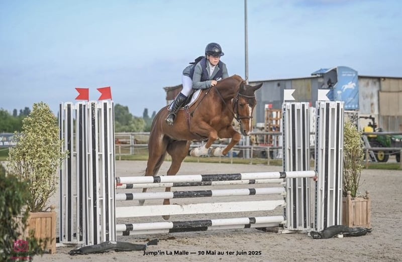 Joli hongre de 4 ans (père anglo Tino de Nouvolieu) Qq parcours en CL1 avec cavalier pro et amateur Très facile à pied et à cheval Bonne tête ne regarde rien Prêt pour la piste Voyage van et poids lourd ok Tonte maréchal Osteo dentiste ok Bonne visite.