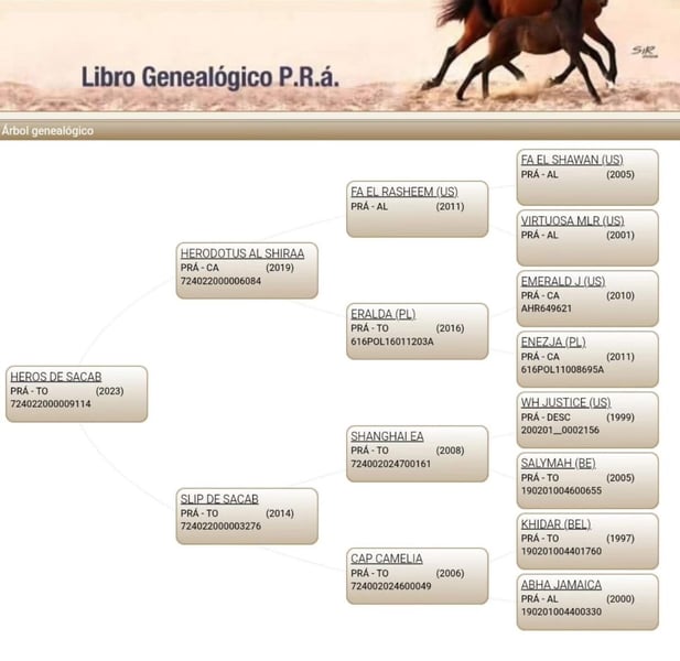 En venta potro Pura raza árabe nacido en 2023 .Hijo de "Herodotus Al Shiraa " a su vez hijo del campeón del mundo "Fa el Rasheem y" Eralda " subcampeona.Por madre tenemos a " Shanghai EA " y el también subcampeón " Khidar " . Genética contrastada a nivel mundial. También cuenta en su pedigrí con caballos como ( Emerald J , Wh Justice, Versace,QR Marc o Marajj).