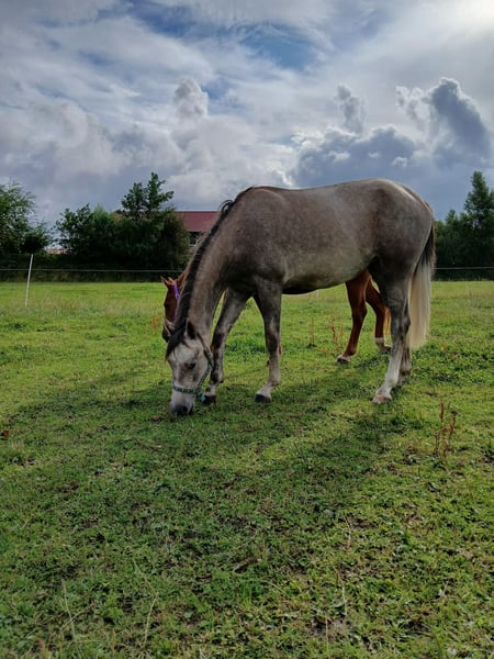 Na sprzedaż jest piękna klacz Shagya Arab, urodzona w 2023 roku. Na pokazie źrebiąt otrzymała premię. Jest gniada i obecnie ma 153 cm w kłębie. Ta utalentowana klacz jest gotowa, aby wspólnie z Tobą osiągać nowe szczyty. Jest dobrze socjalizowana, bardzo pewna siebie i łączy wszystkie zalety swojej rasy. Wychowała się w stadzie z rodziną. Regularnie odrobaczana, szczepiona i pokazana kowalowi. Jej szkolenie jest dostosowane do wieku. Idealna dla jeźdźców, którzy szukają wszechstronnego partnera, który sprawdzi się zarówno w sporcie, jak i w rekreacji. W razie zainteresowania lub dodatkowych pytań, chętnie służę pomocą!